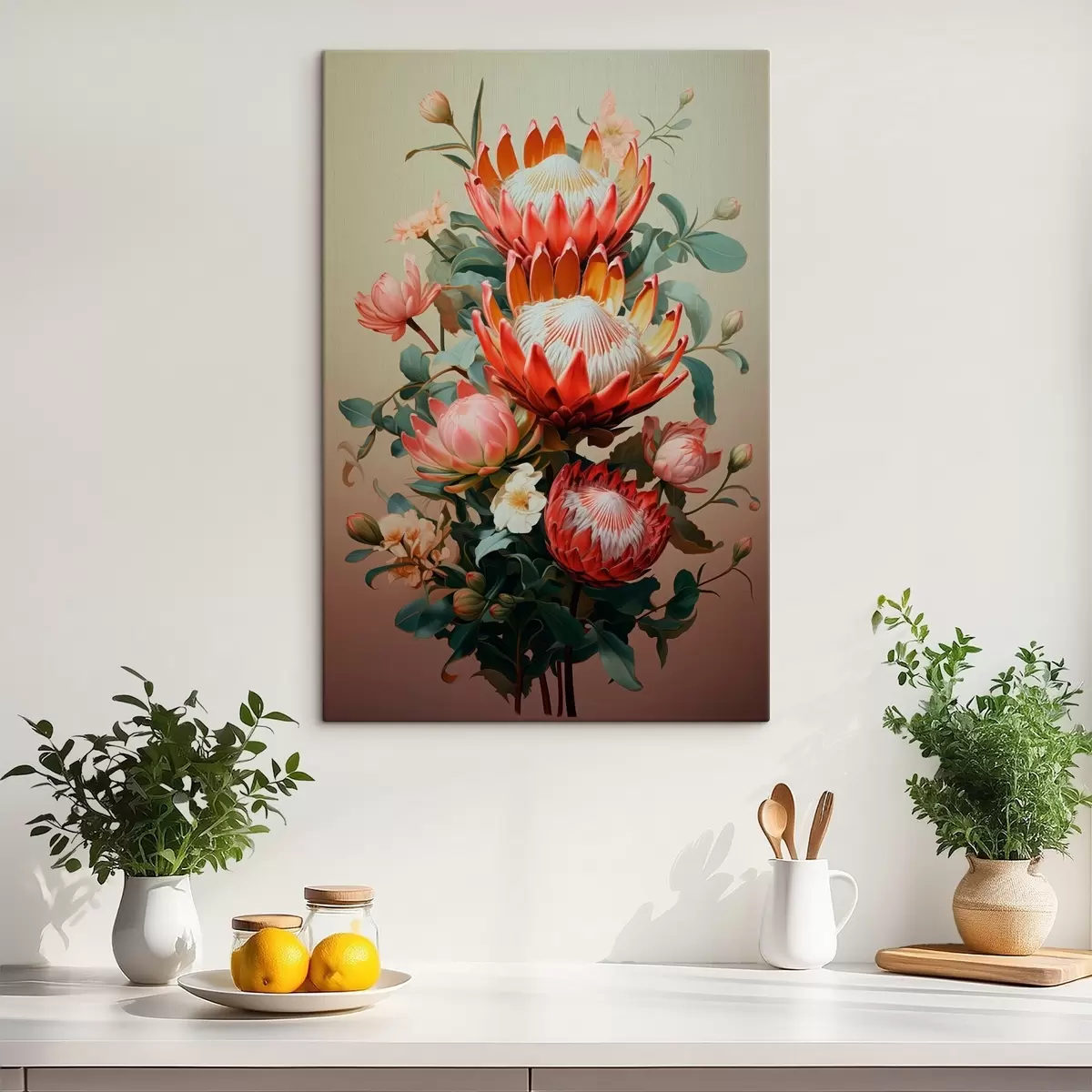 Schilderij Compositie met grote protea's in een moderne digitale schilderachtige illustratiestijl Art. s46947