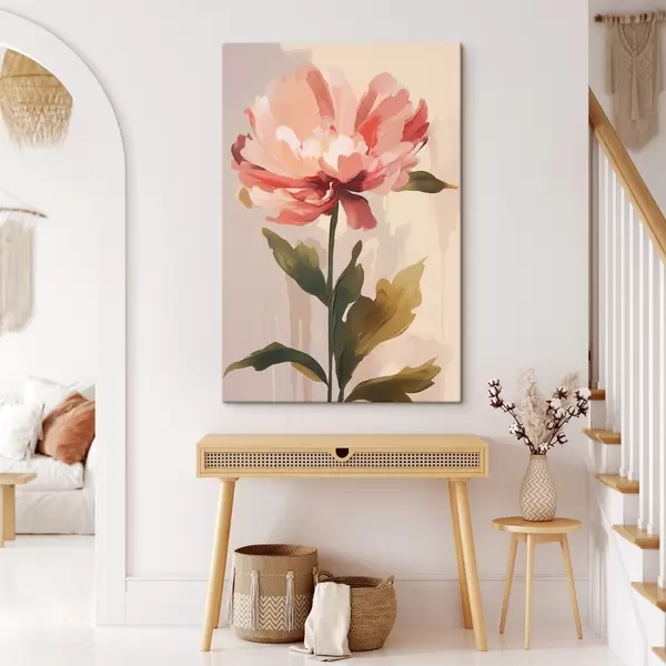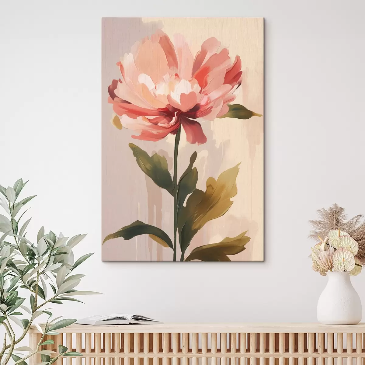 Schilderij Pioenroos met koraalroze bloemblaadjes in een moderne illustratiestijl Art. s46948