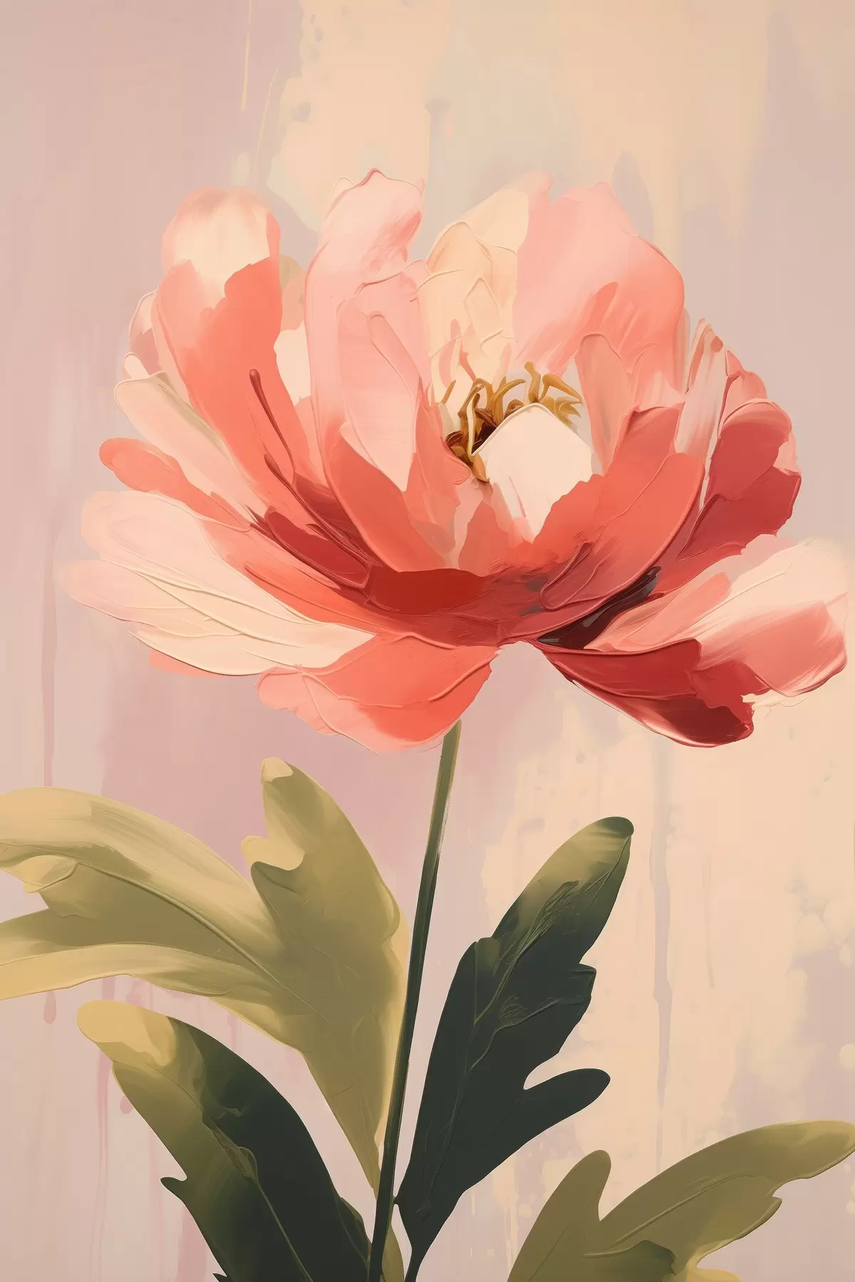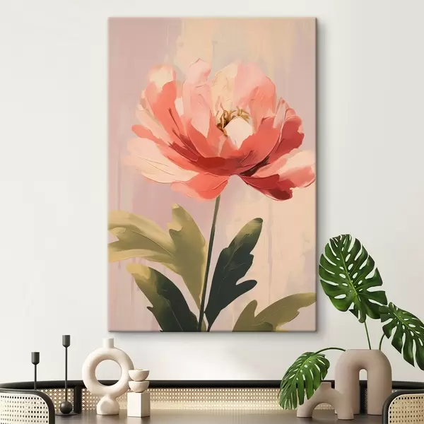 Schilderijen Koraalpioenroos op een pastelkleurige achtergrond in een moderne illustratiestijl s46949