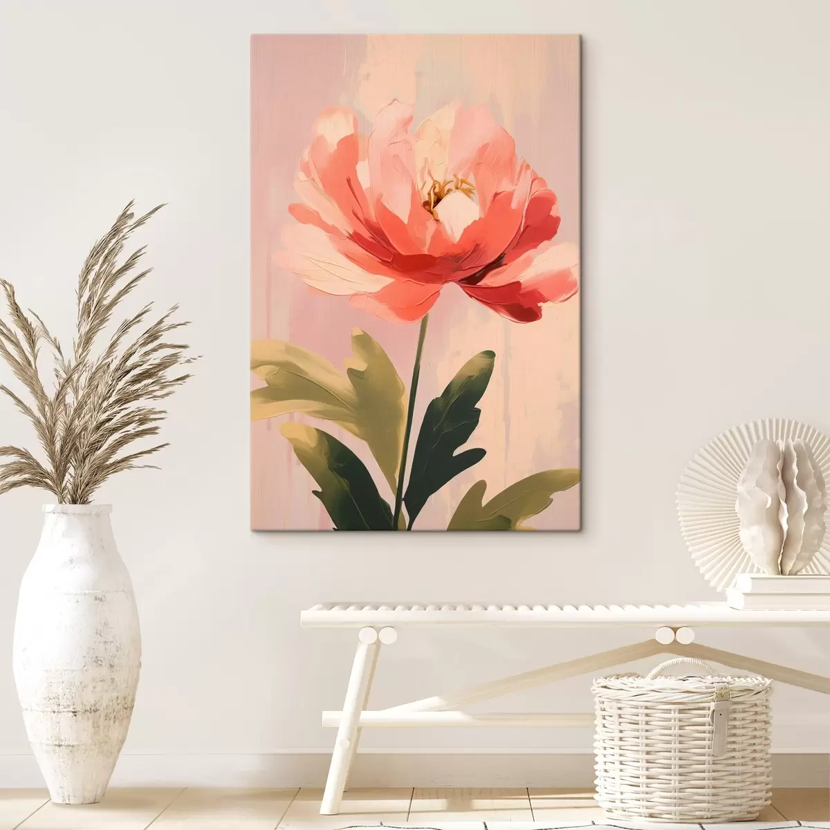 Schilderij Koraalpioenroos op een pastelkleurige achtergrond in een moderne illustratiestijl Art. s46949