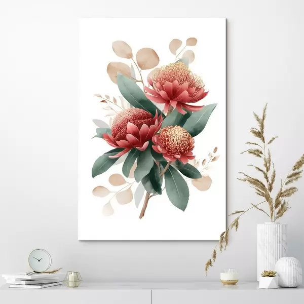 Schilderijen Expressief boeket van protea's en decoratief blad in moderne kunstillustratiestijl s46954