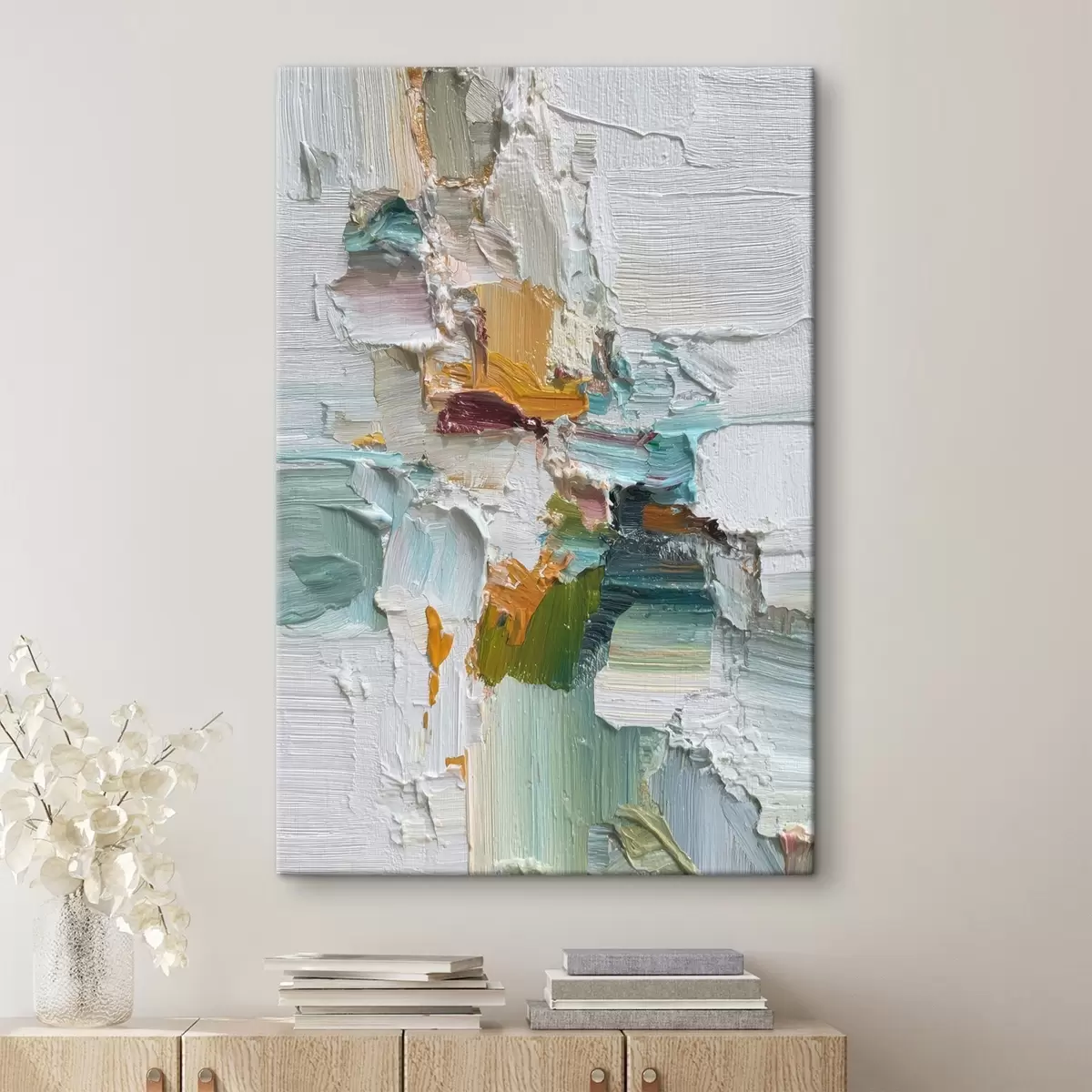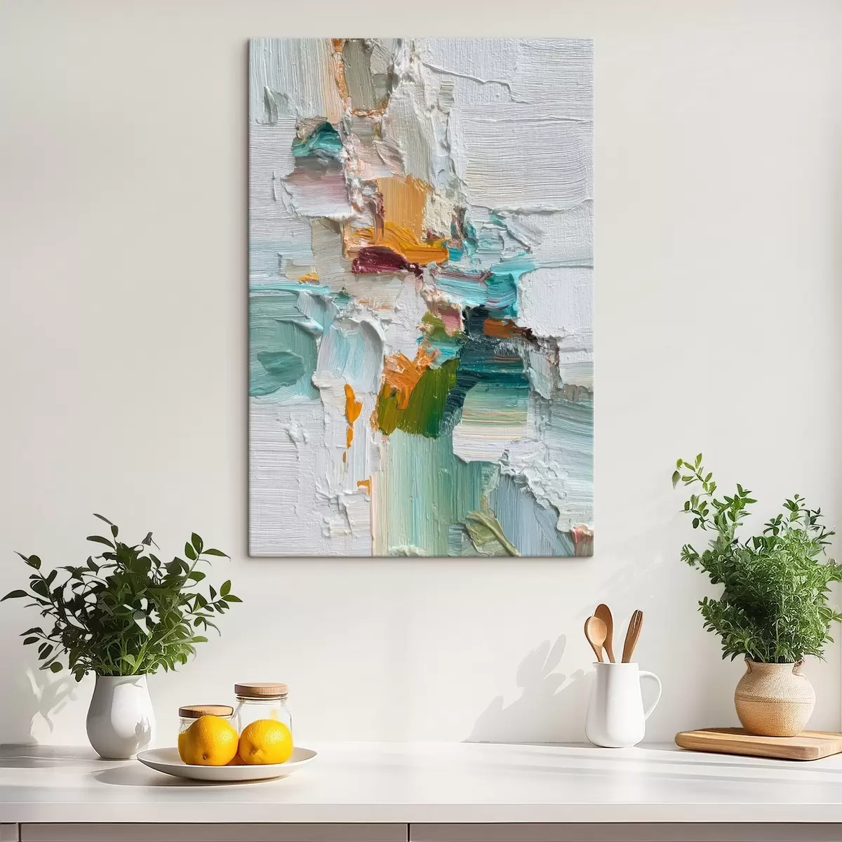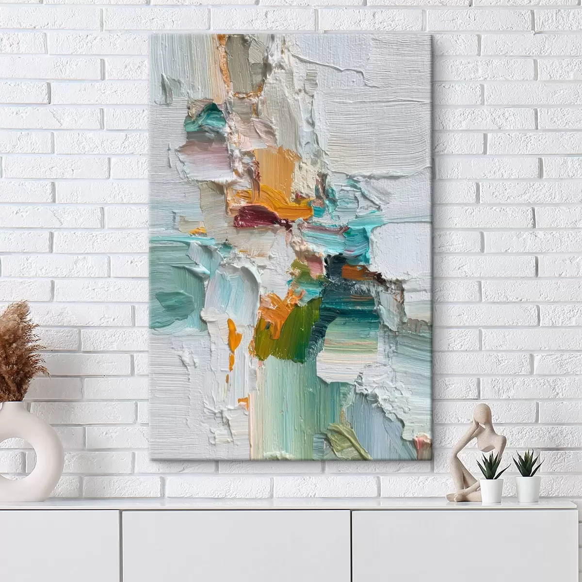 Schilderij Compositie met turquoise en oranje accenten in olieverfstijl Art. s46958