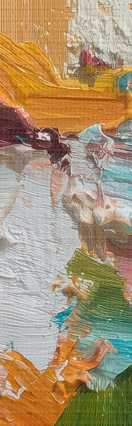 Het schilderij kan direct na ontvangst worden opgehangen. Het schilderij wordt opgespannen op een 2 cm breed houten spieraam.