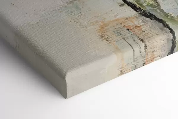 Het schilderij kan direct na ontvangst worden opgehangen. Het schilderij wordt opgespannen op een 2 cm breed houten spieraam.