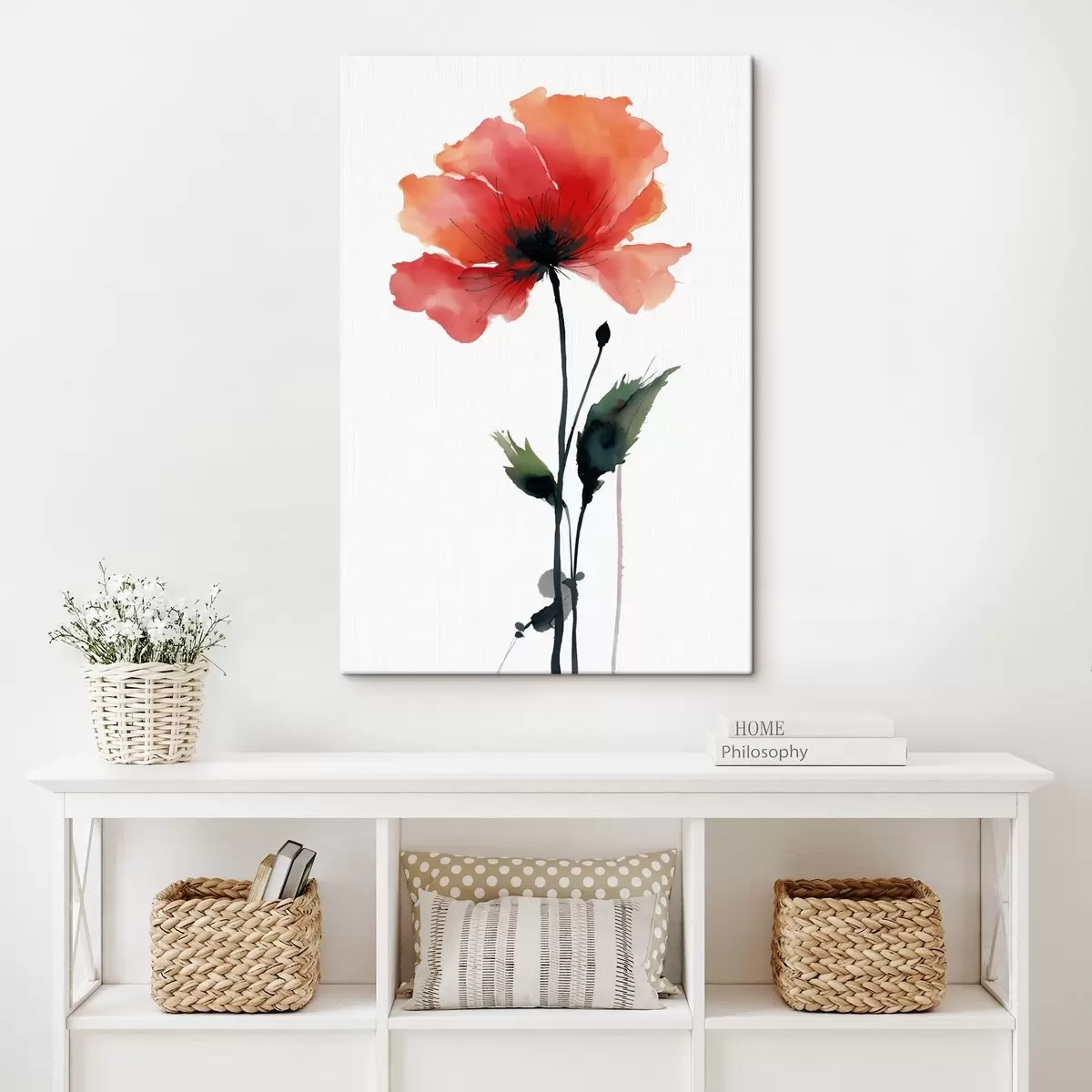 Schilderij Aquarel papaver in een rustig kleurenpalet met zachte kleurovergangen Art. s47087