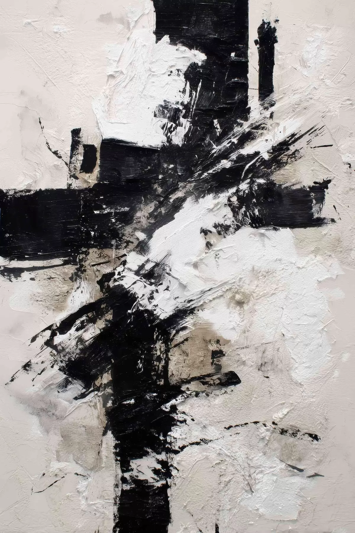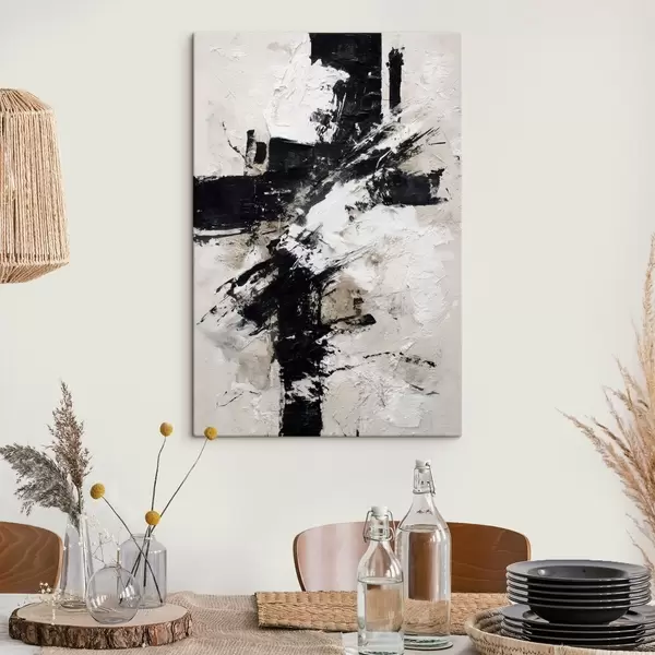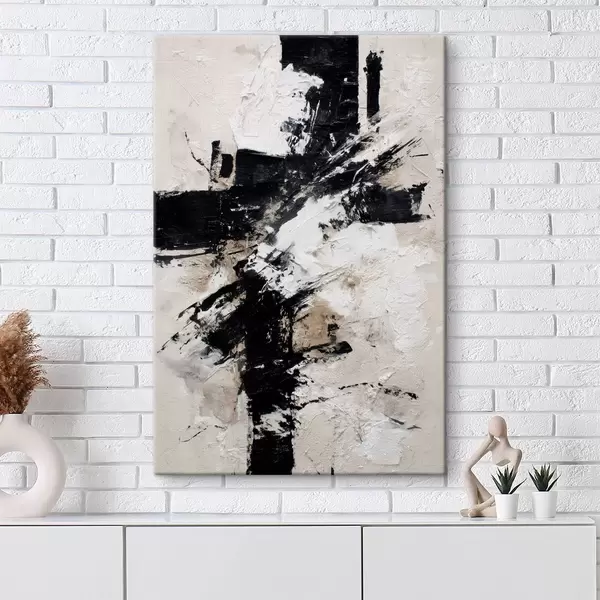 Schilderij Modern abstract interieur met chaotische lijnen en volumetrische penseelstreken in canvas schilderstijl Art. s47090