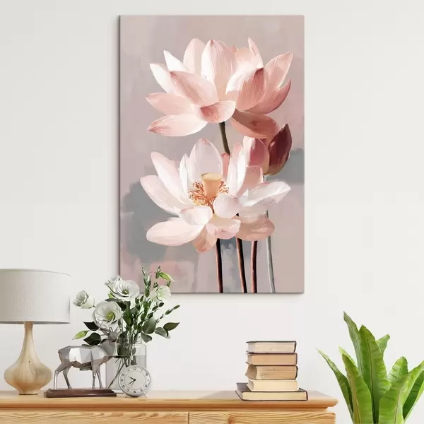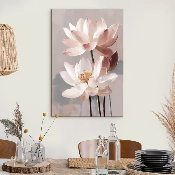 Schilderij Delicate roze lotussen op een pastelkleurige achtergrond in moderne schilderstijl Art. s47092