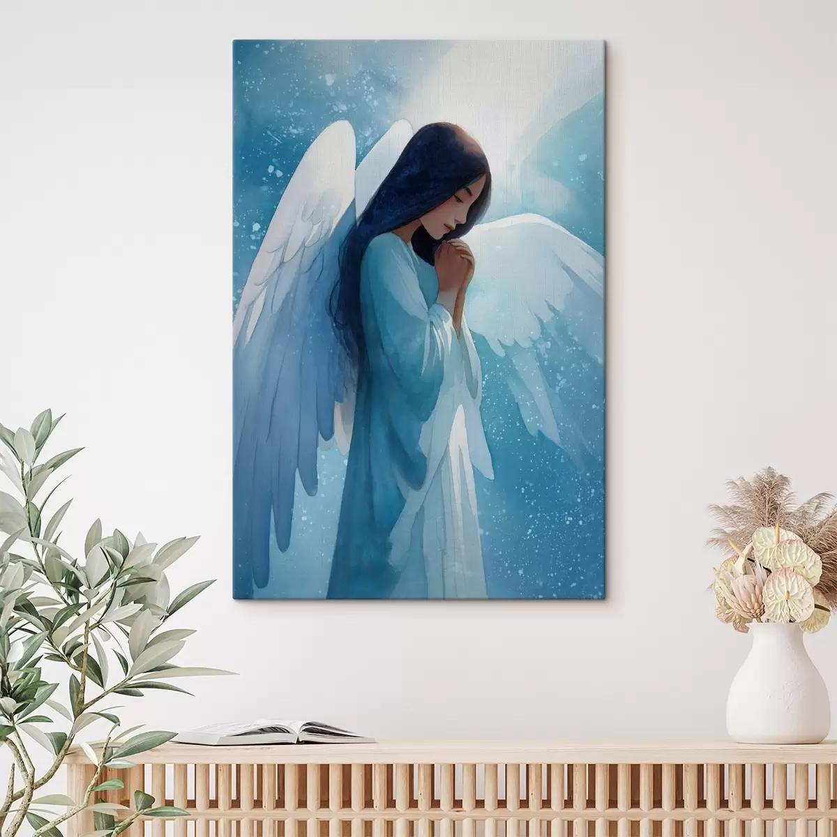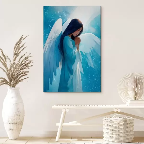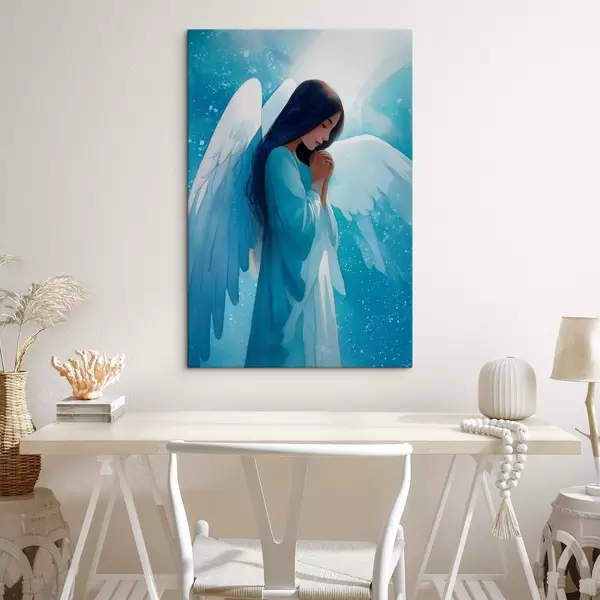 Schilderij Aquarelharmonie: engel in licht op een blauwe achtergrond Art. s47094