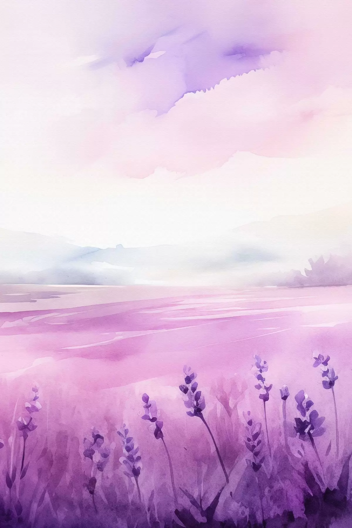 Schilderijen Lavendelveld, imitatie-aquarel s47109