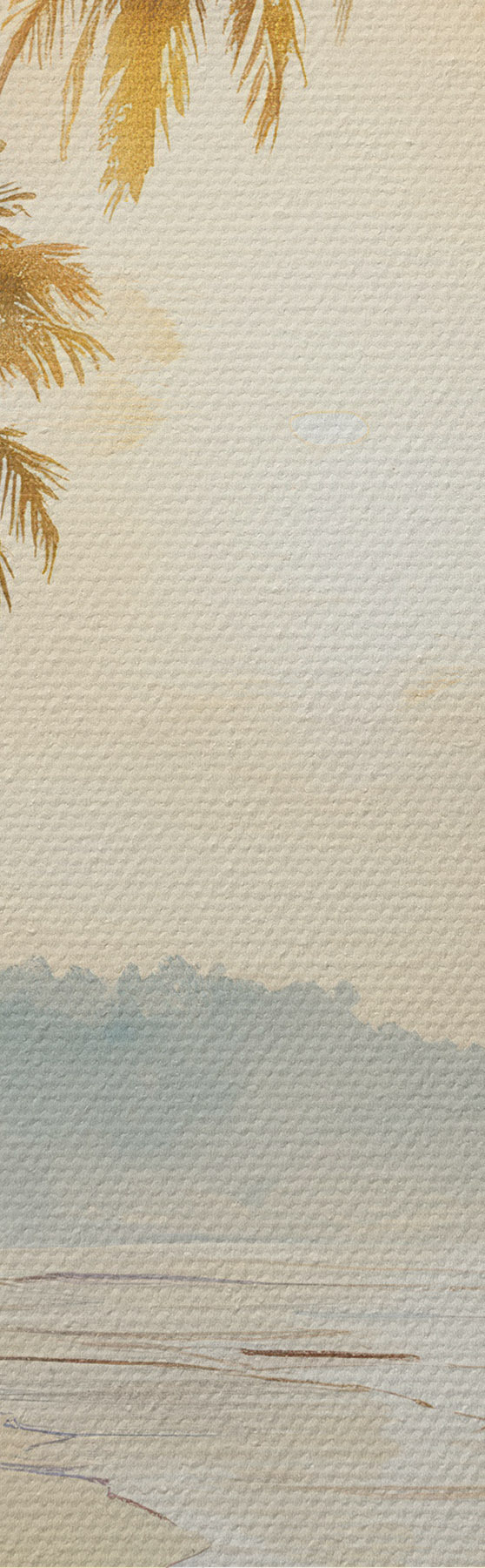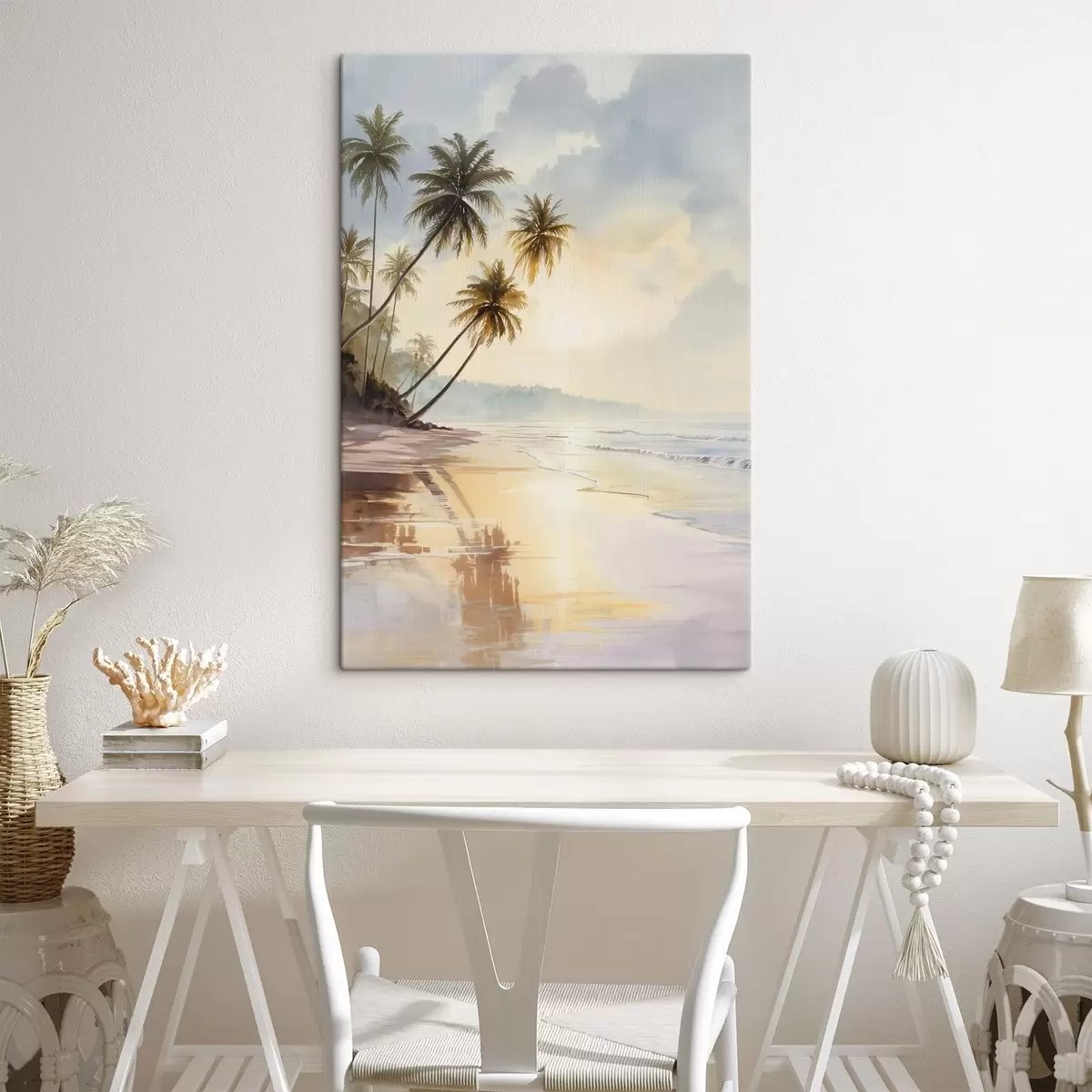 Schilderij zonsondergangstrand op een eiland in aquarelstijl Art. s47136