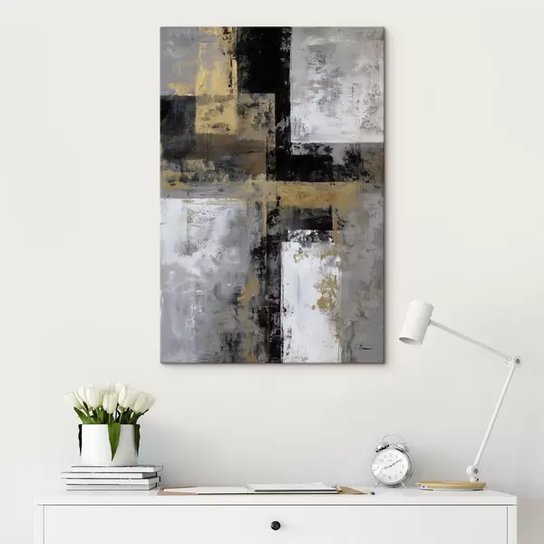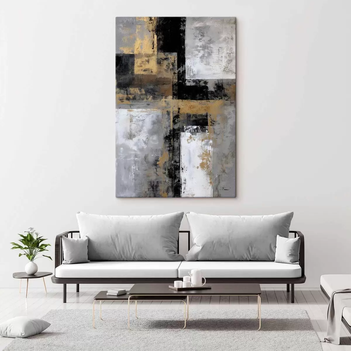Schilderijen hedendaagse textuurabstractie in zwart-, grijs- en wittinten s47139