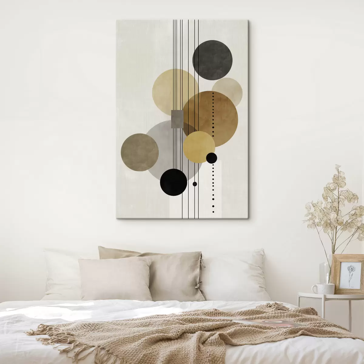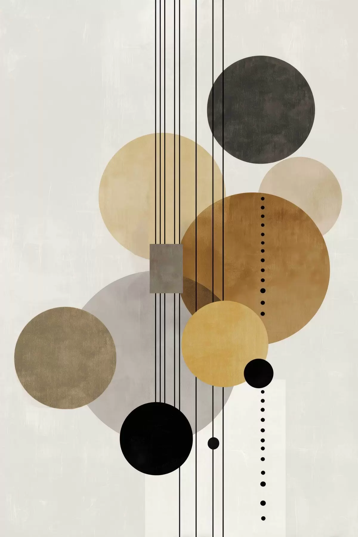 Schilderij abstractie met cirkels en lijnen in warme kleuren Art. s47238