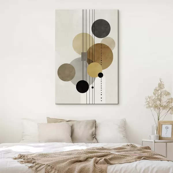 Schilderijen abstractie met cirkels en lijnen in warme kleuren s47238