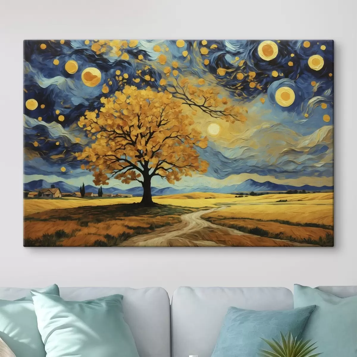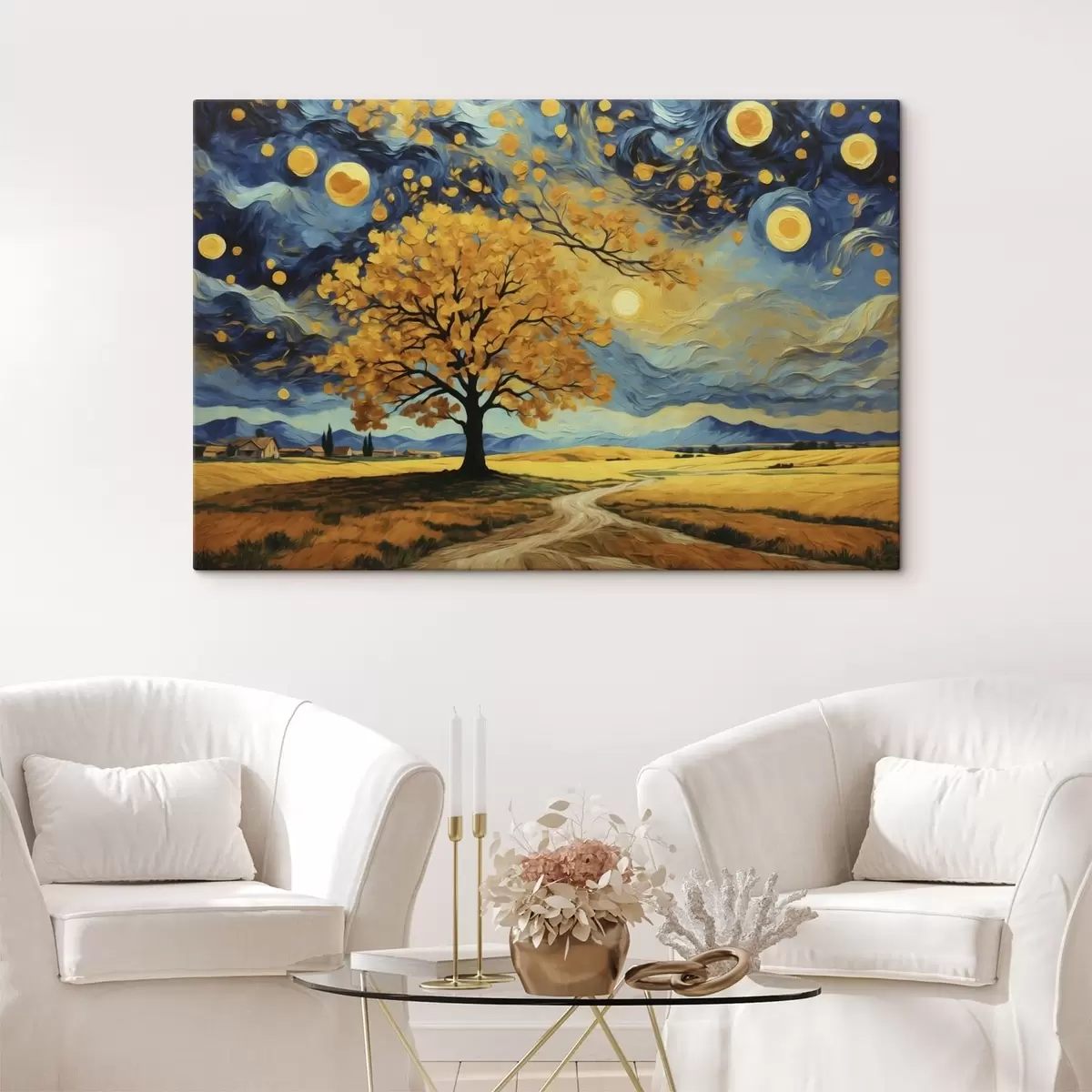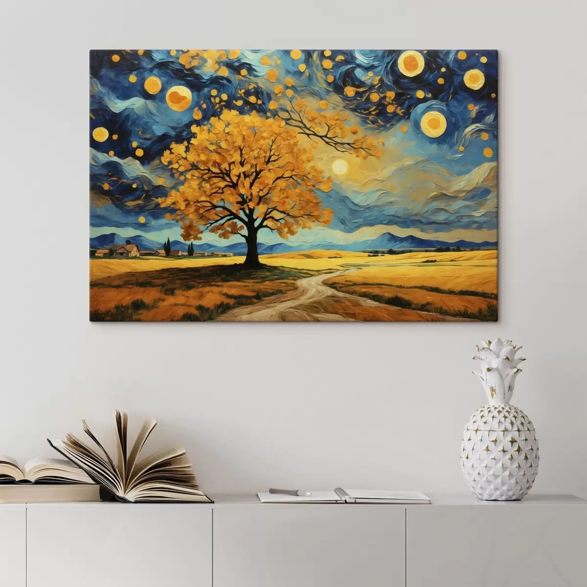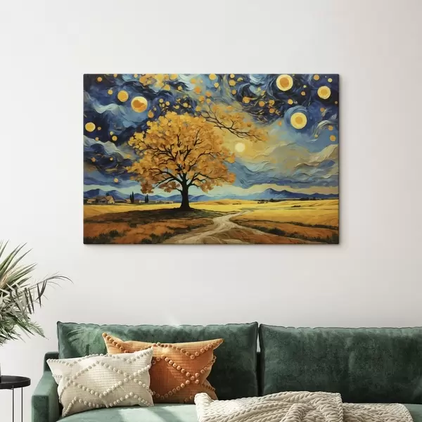 Schilderij Landschap met een boom en een heldere sterrenhemel Art. s47255
