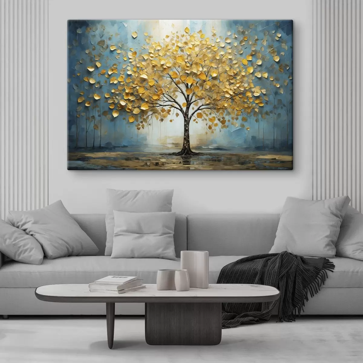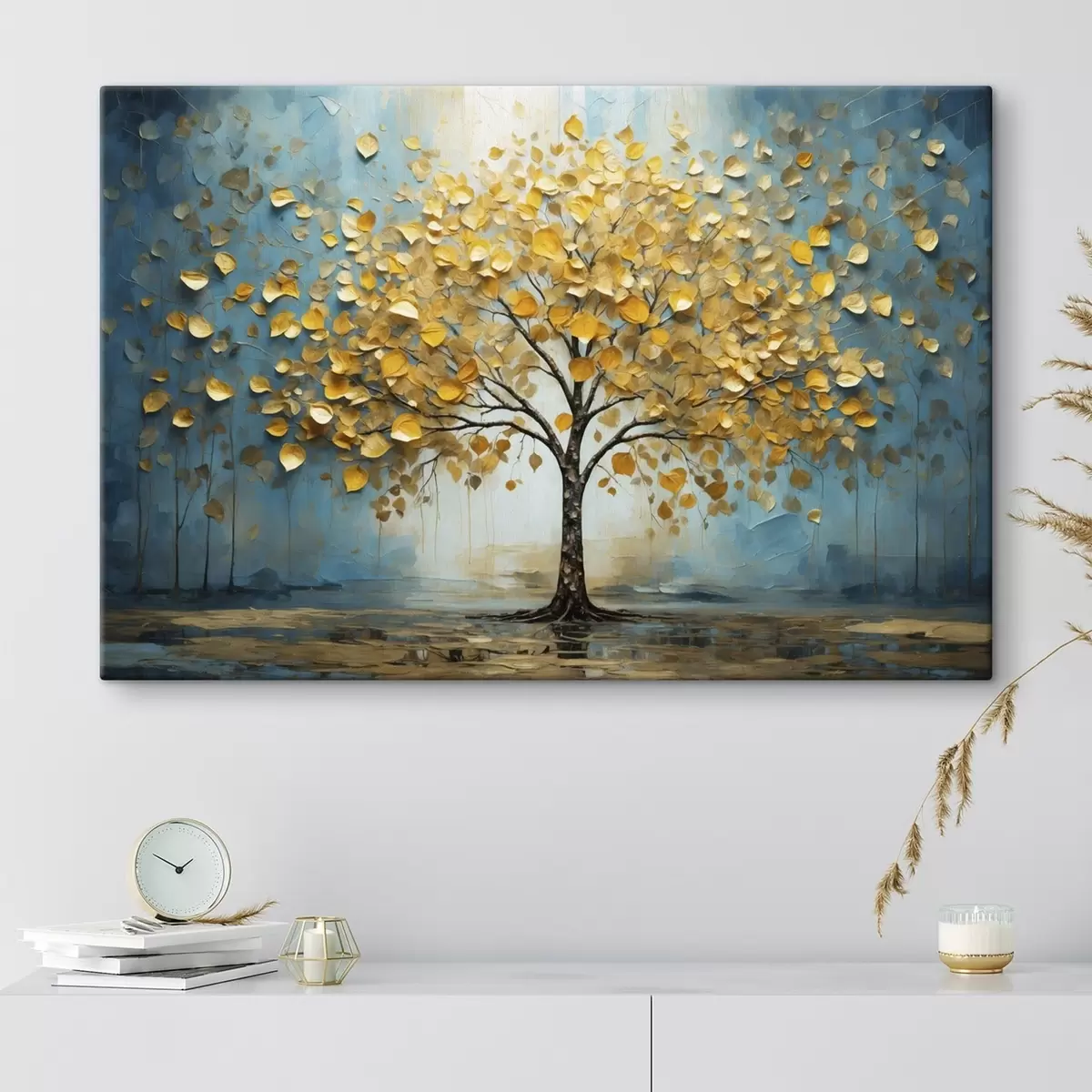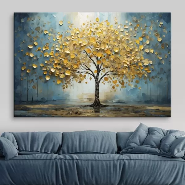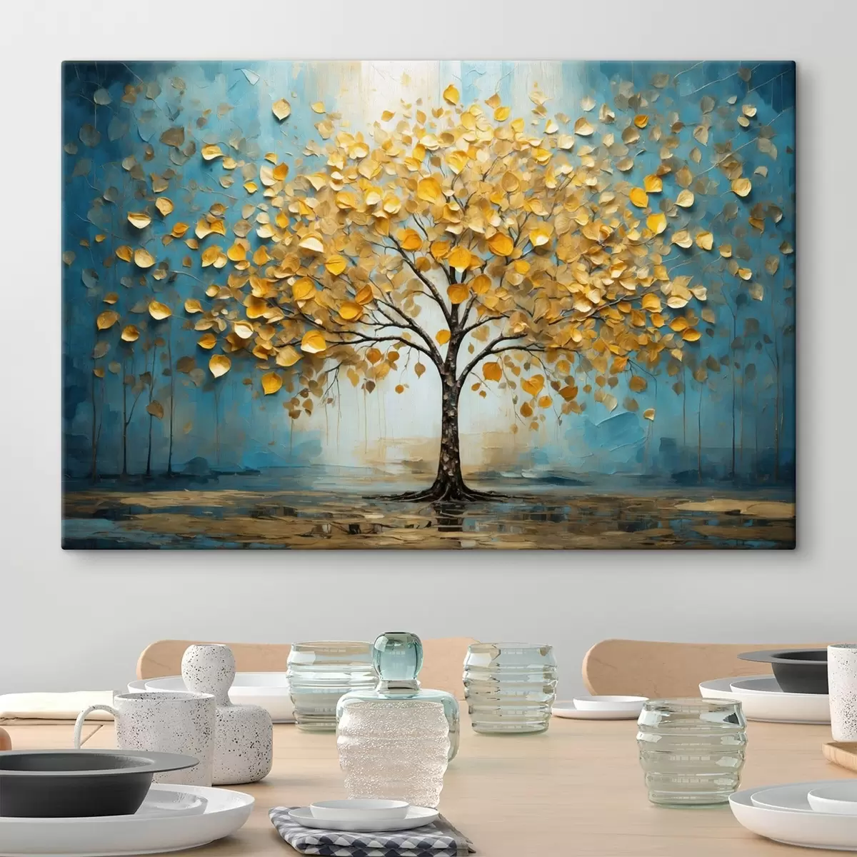 Schilderij Boom met gele bladeren tegen blauwe achtergrond Art. s47256