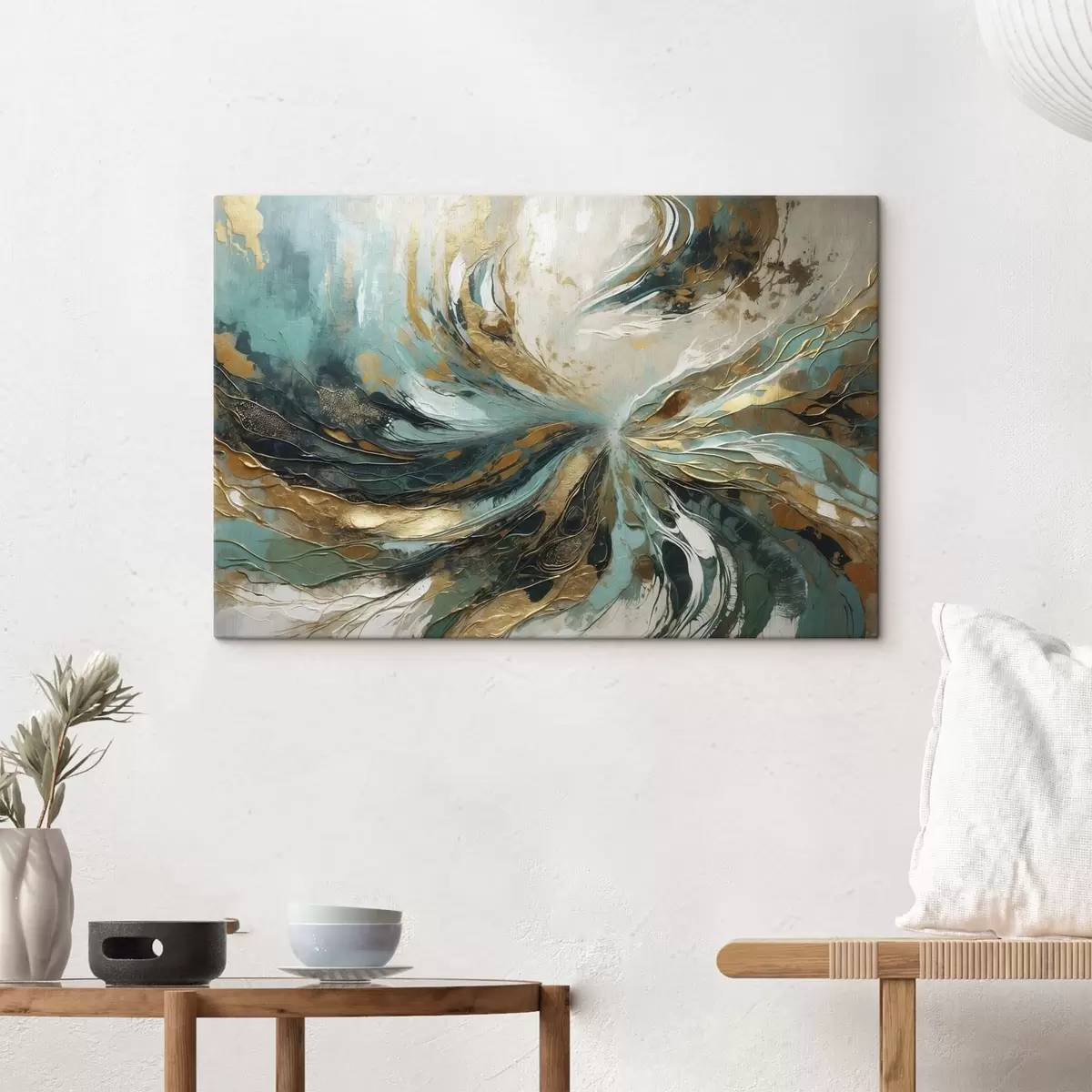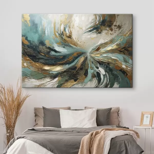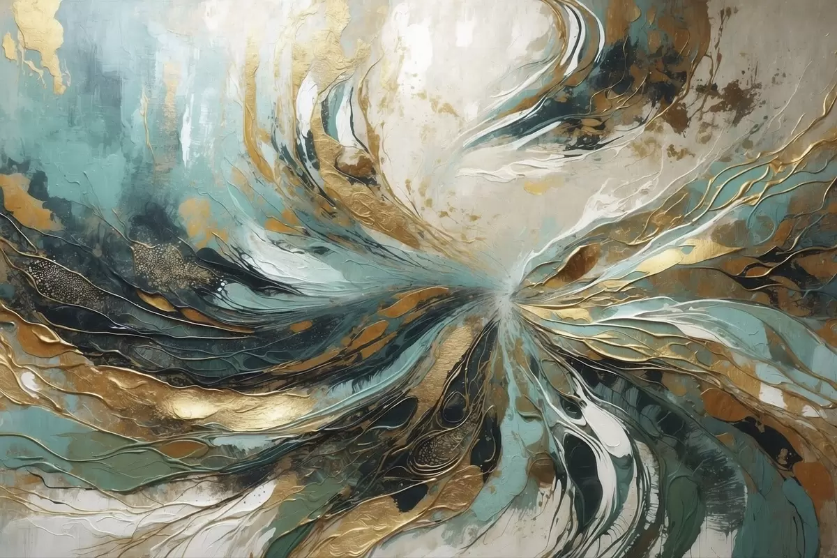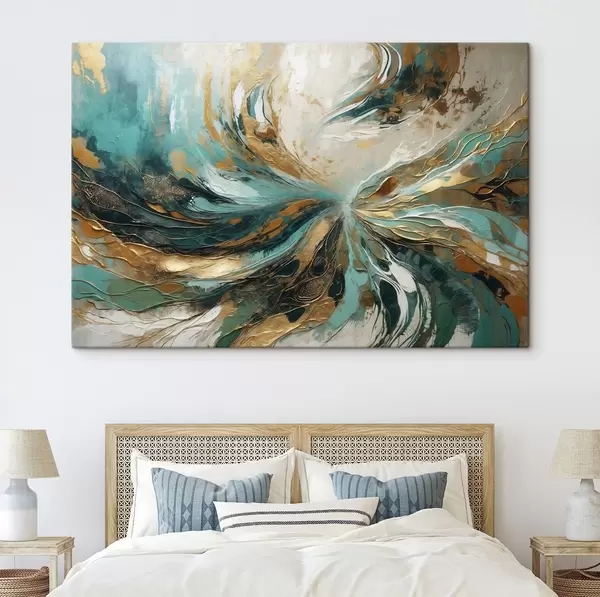 Schilderij Turquoise abstractie met lijnen Art. s47258