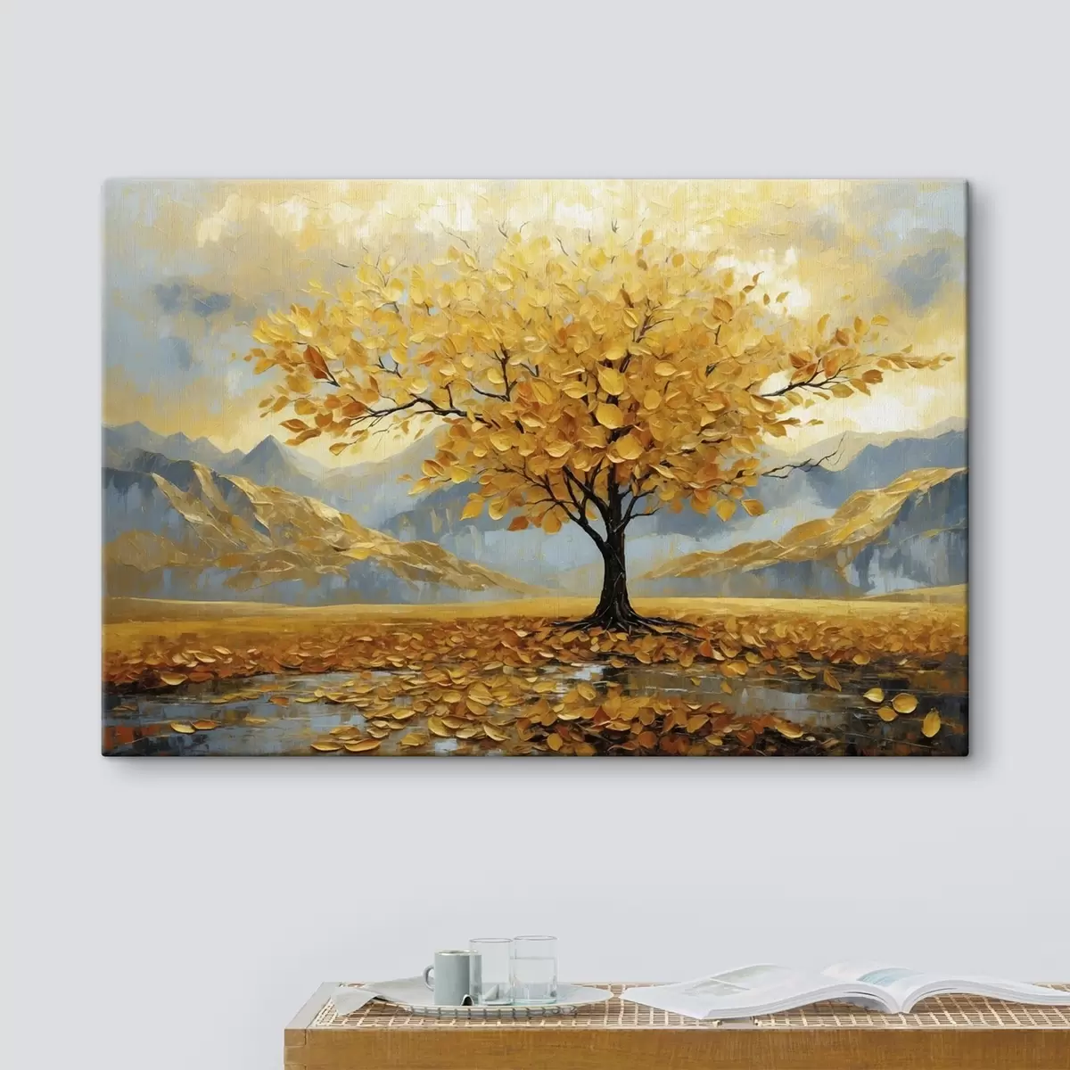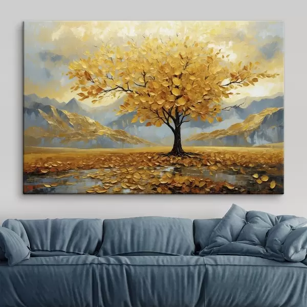 Schilderij Boom met gele bladeren in een berglandschap Art. s47285
