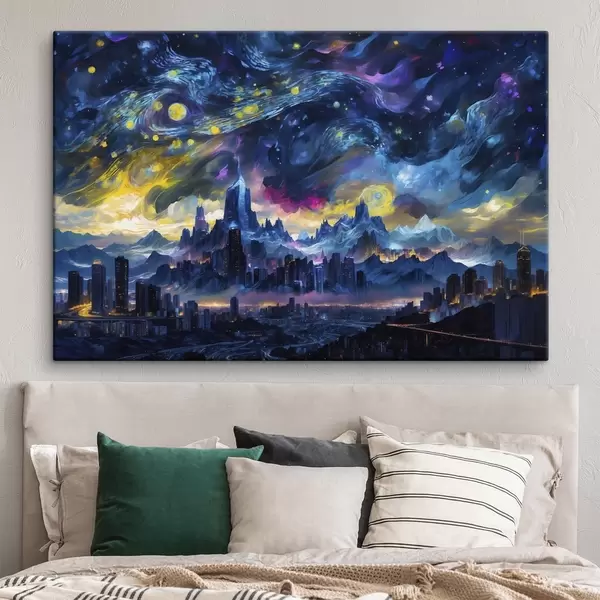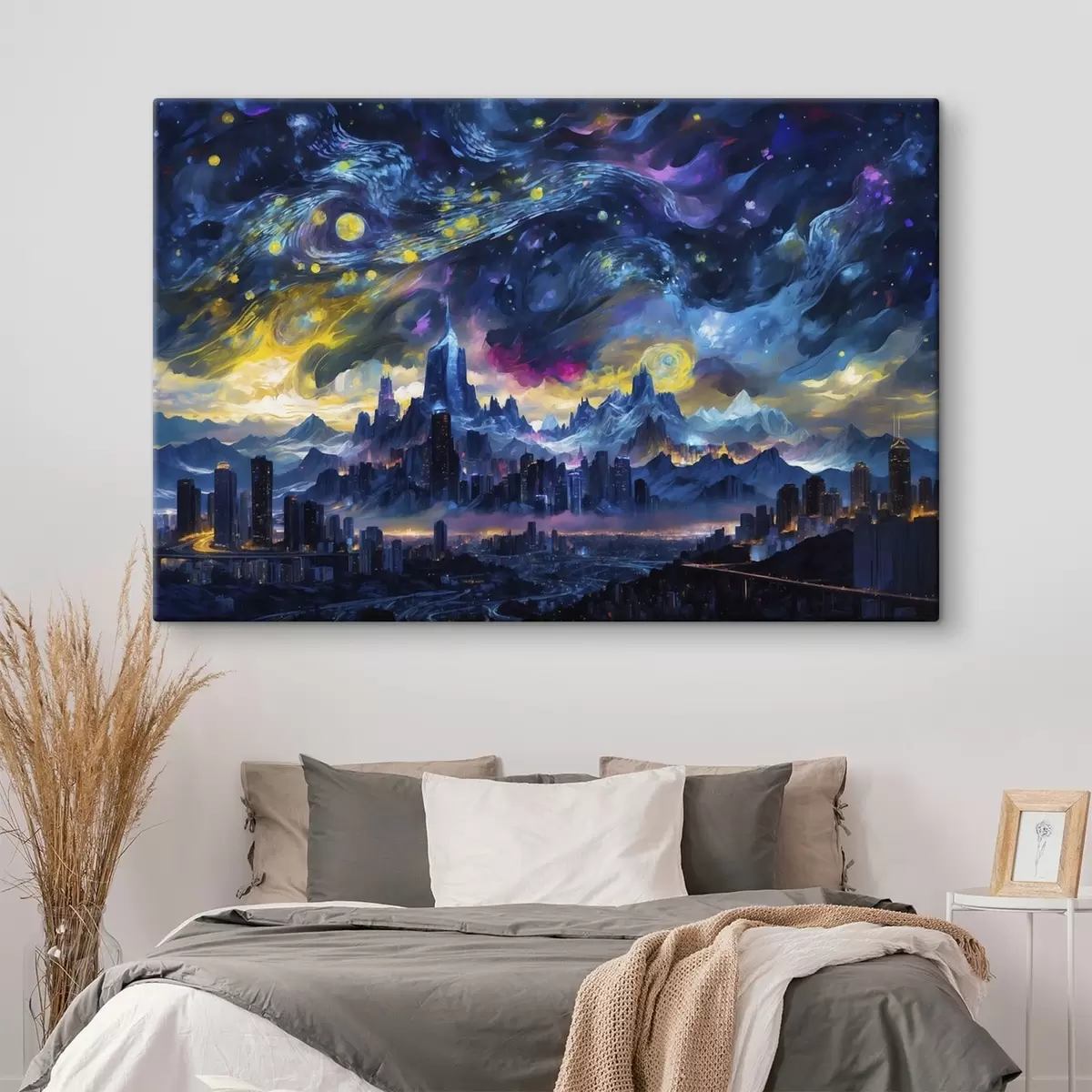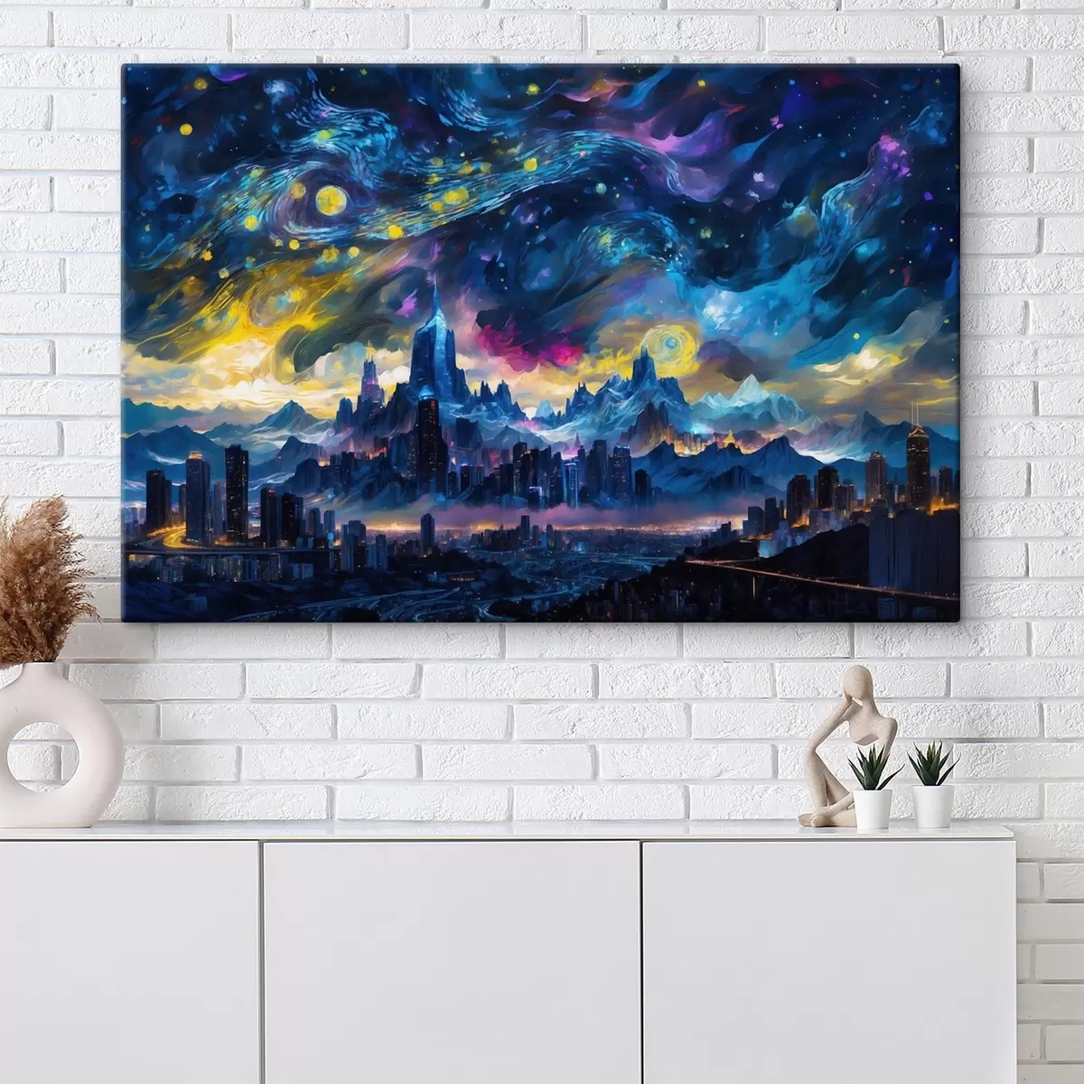 Schilderij Fantasie stad onder een stralende nachtelijke hemel Art. s47288