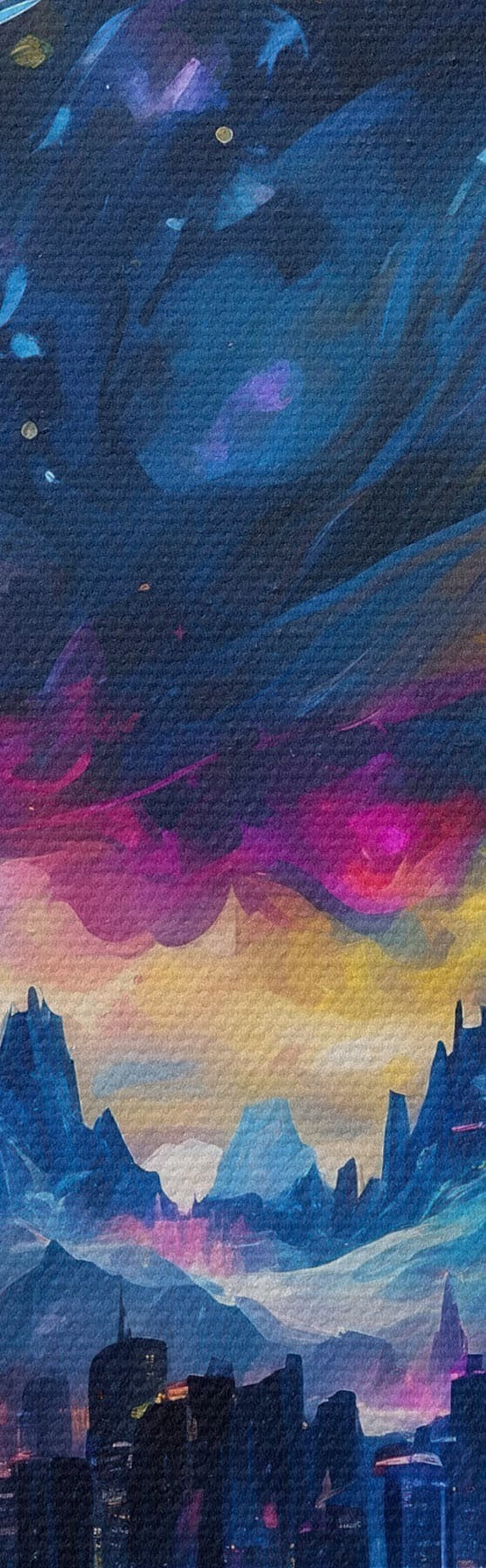 Schilderijen Fantasie stad onder een stralende nachtelijke hemel s47288