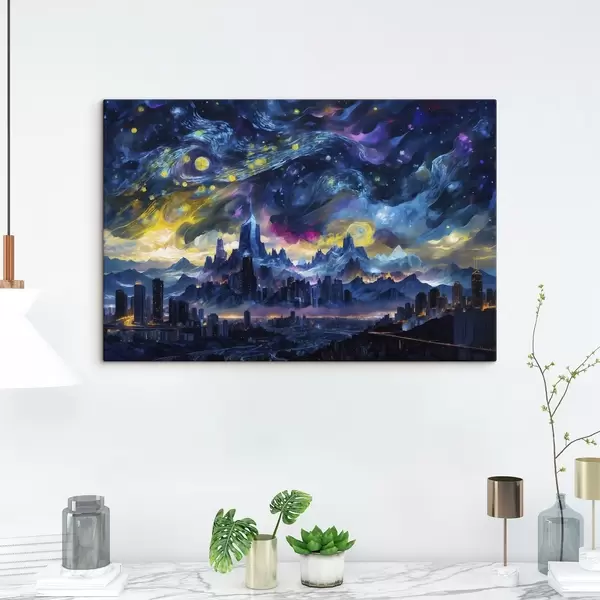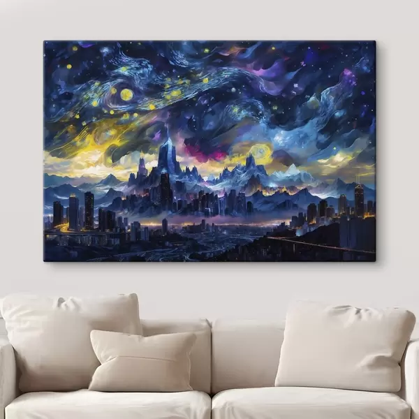 Schilderij Fantasie stad onder een stralende nachtelijke hemel Art. s47288
