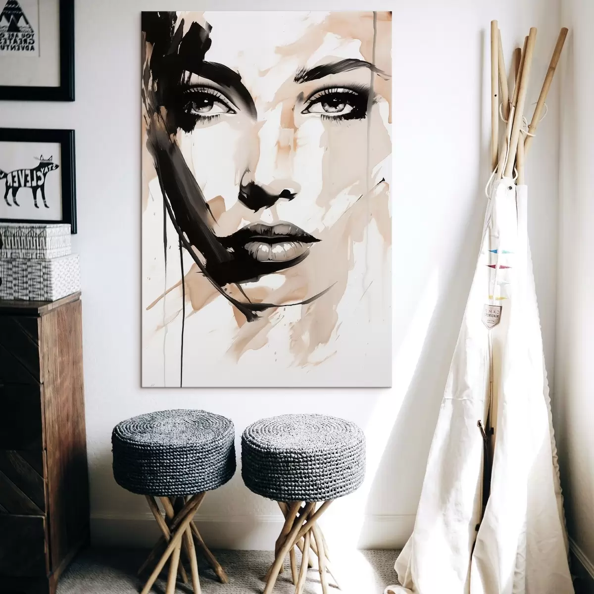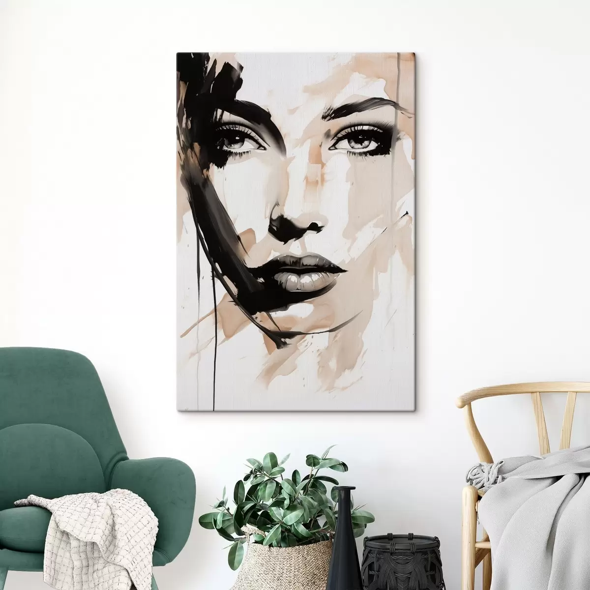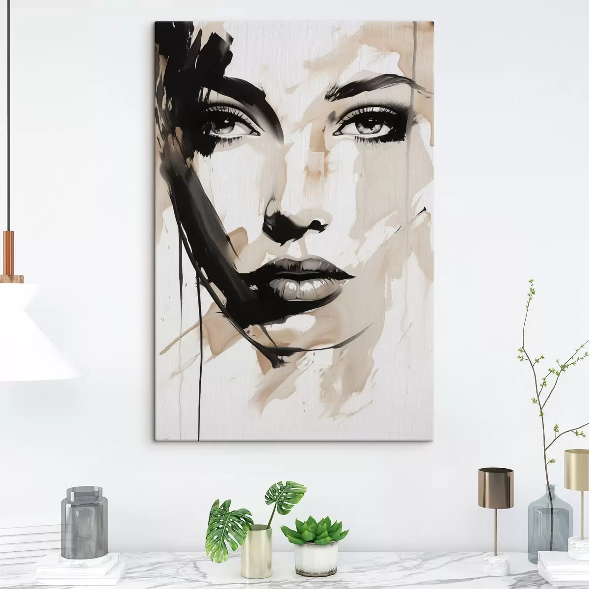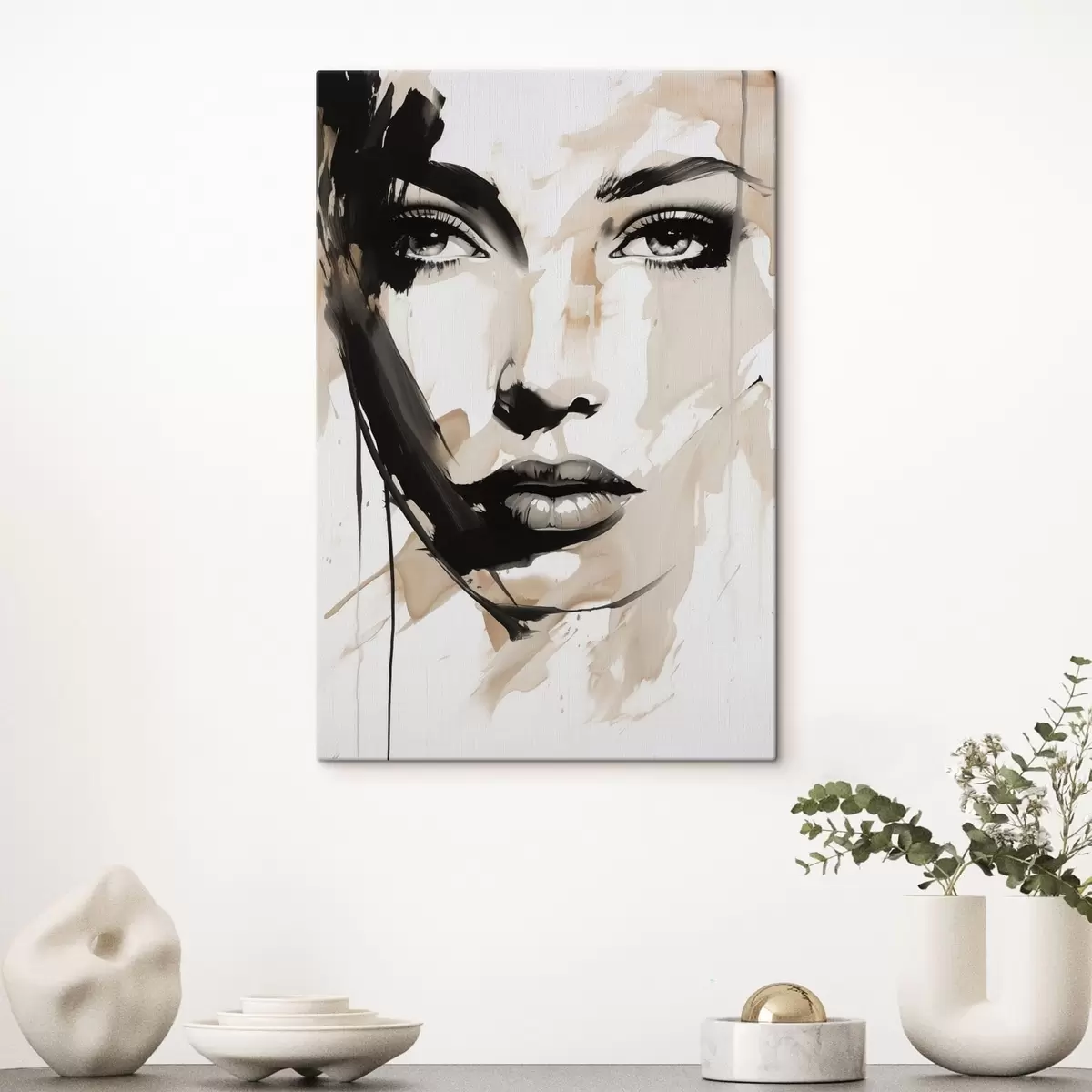 Schilderijen Abstract vrouwelijk portret in lichte tinten s47290