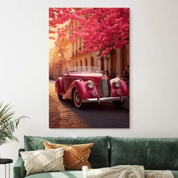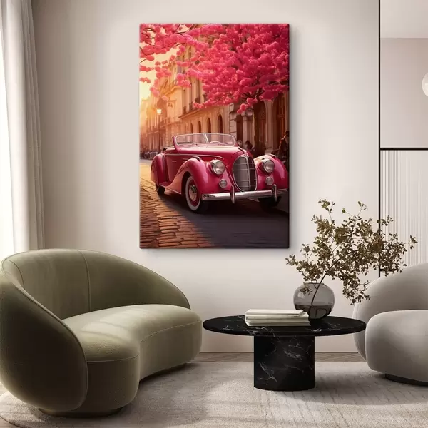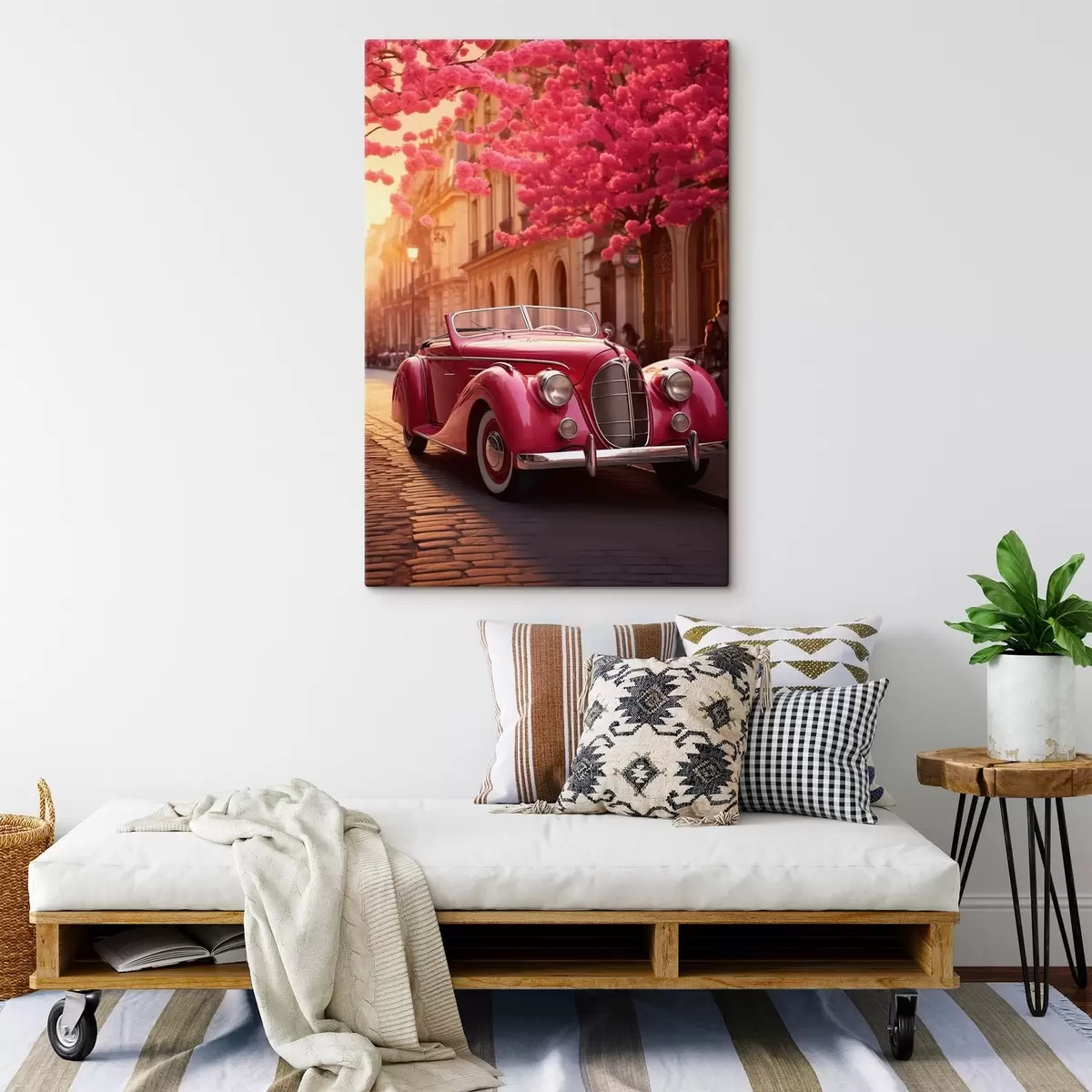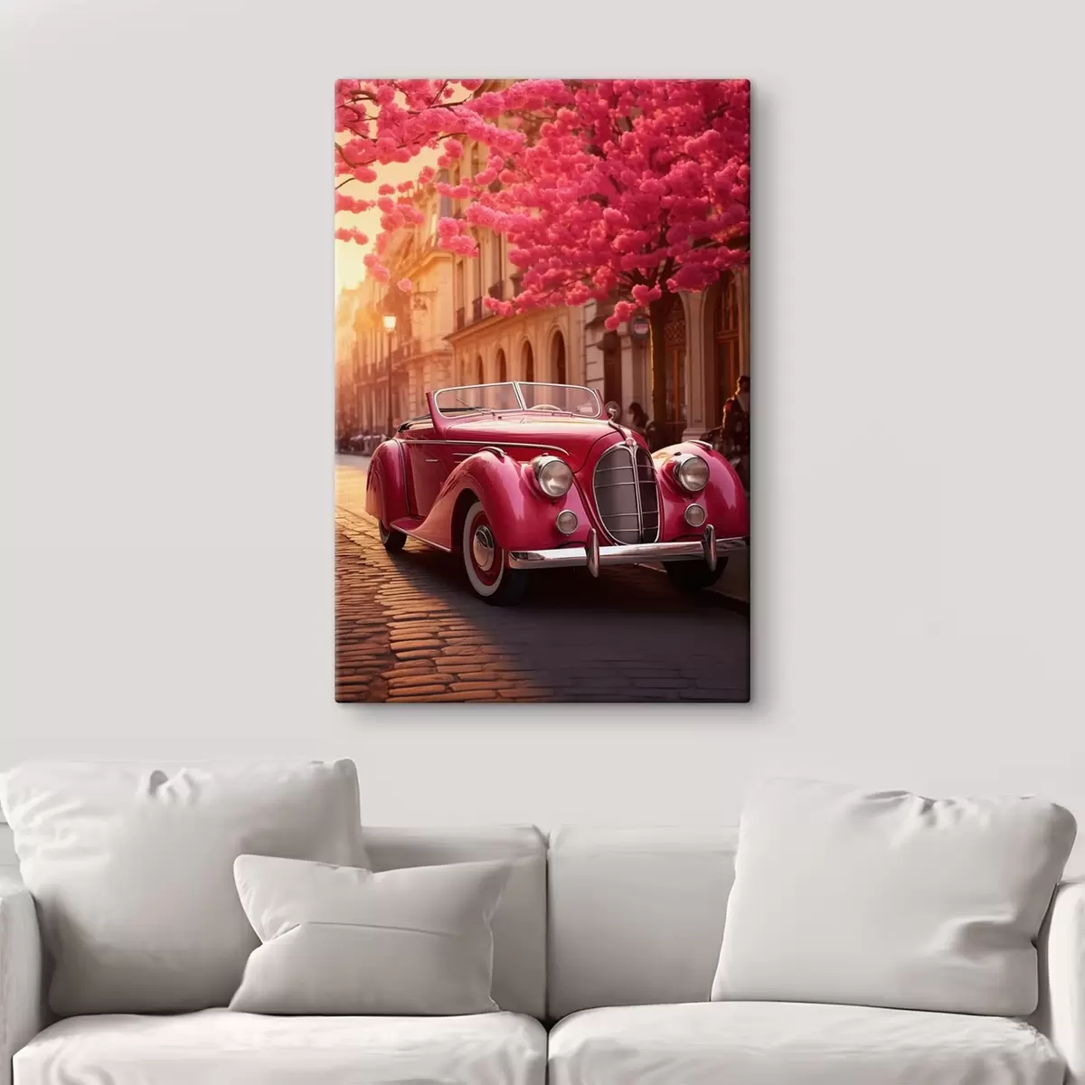 Schilderij Roze auto onder bloeiende bomen Art. s47295
