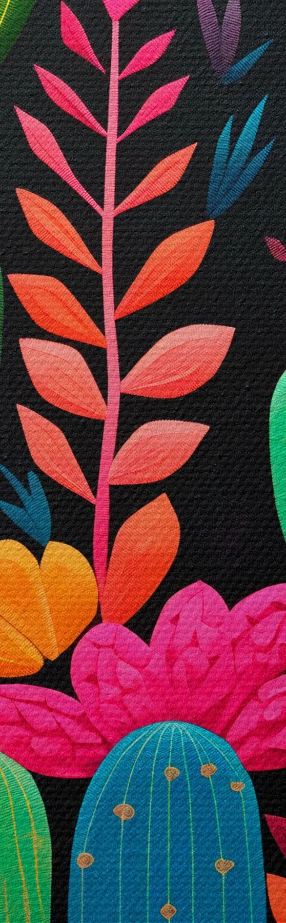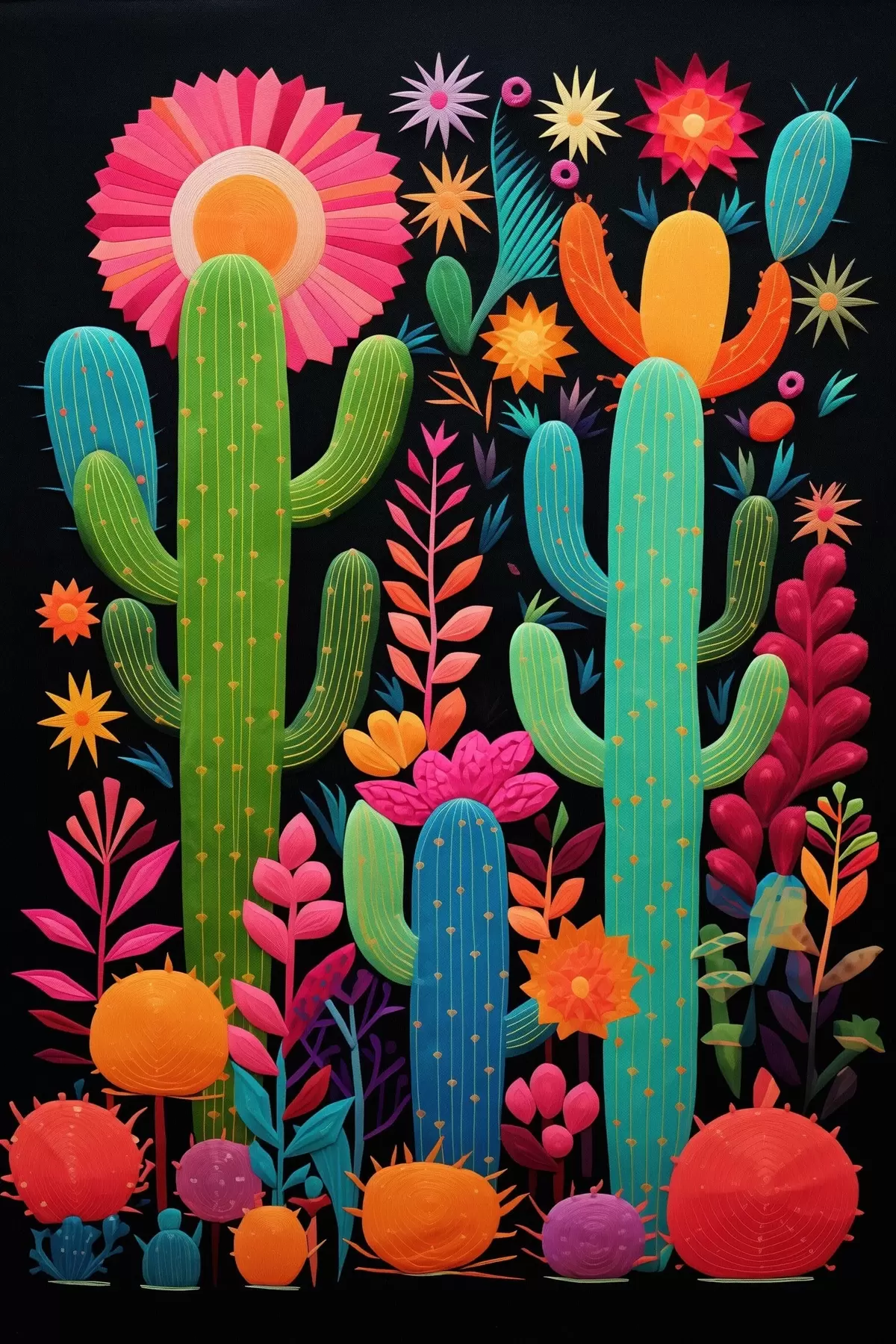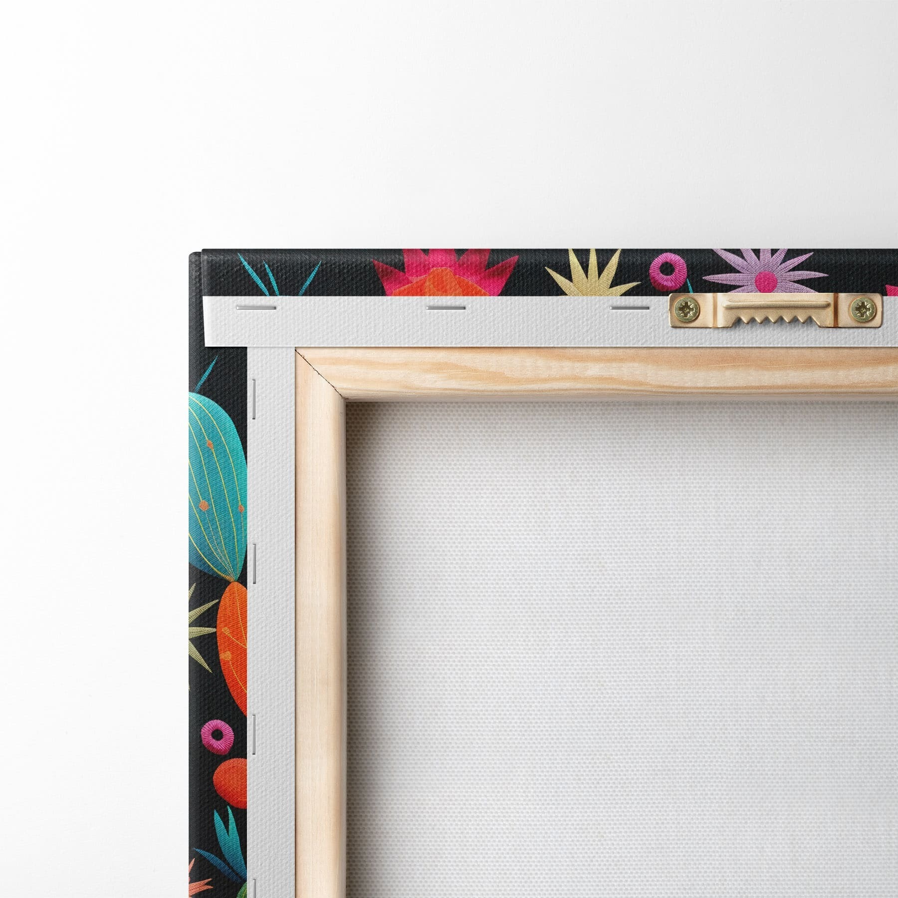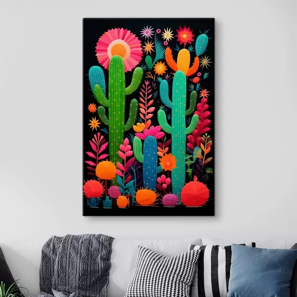 Schilderij Levendige cactussen en bloemen op donkere achtergrond Art. s47297