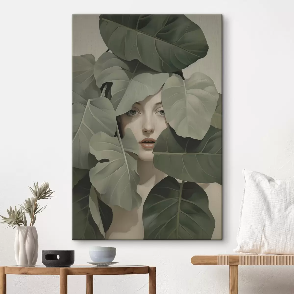 Schilderijen Portret van een meisje in gebladerte s47331
