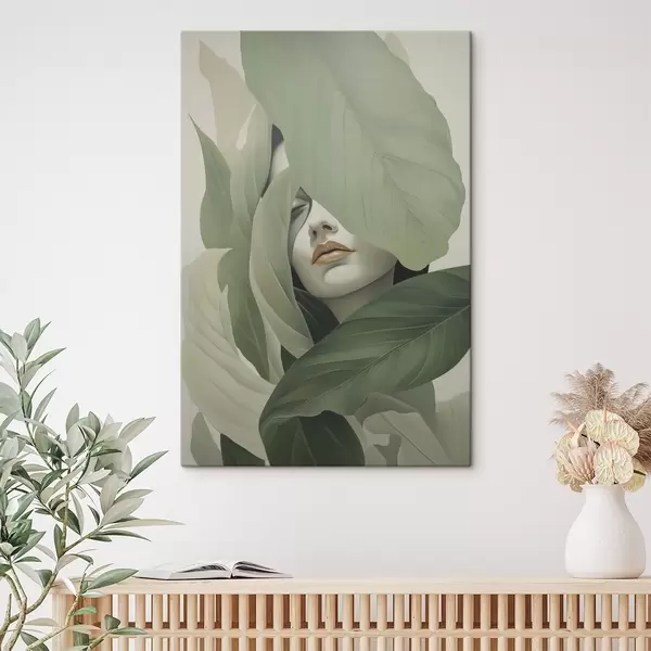 Schilderijen Surrealistisch portret van een meisje in gebladerte s47332