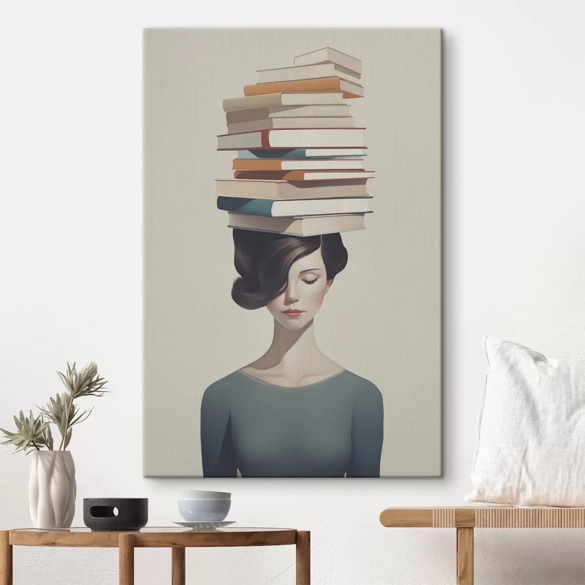 Schilderij Surrealistisch portret van een meisje met boeken Art. s47334