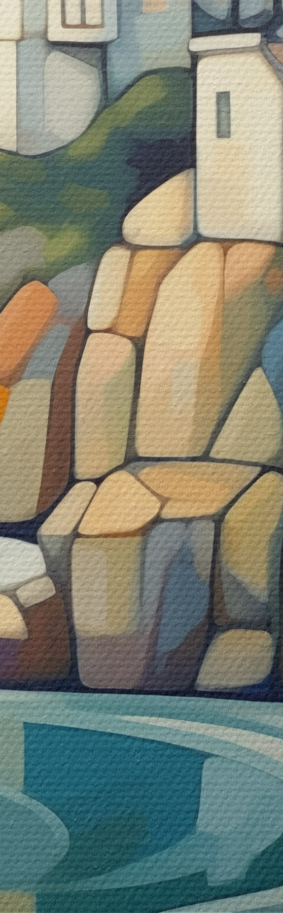 Het schilderij kan direct na ontvangst worden opgehangen. Het schilderij wordt opgespannen op een 2 cm breed houten spieraam.
