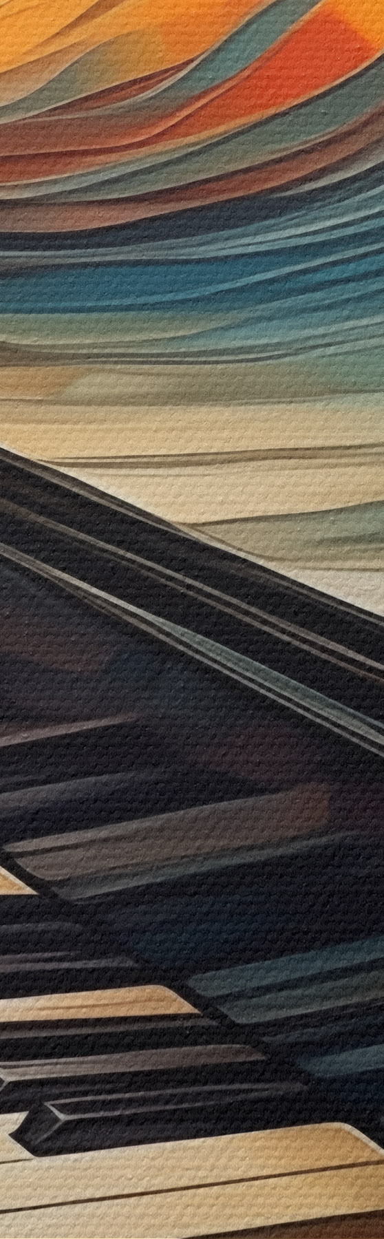 Het schilderij kan direct na ontvangst worden opgehangen. Het schilderij wordt opgespannen op een 2 cm breed houten spieraam.