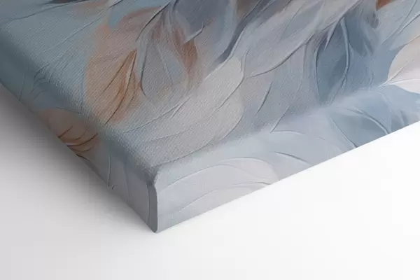Schilderijen Abstract schilderij van veren in tinten wit, blauw en bruin, met een zachte, vloeiende textuur en een lichte achtergrond. s47417