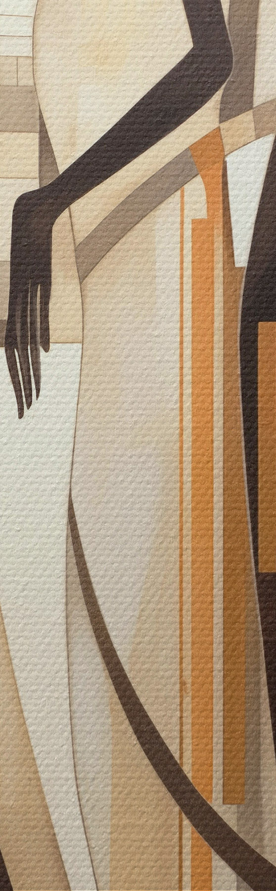 Schilderijen Gestileerde vrouwelijke figuren met geometrische elementen tegen een abstracte achtergrond van verticale lijnen s47423