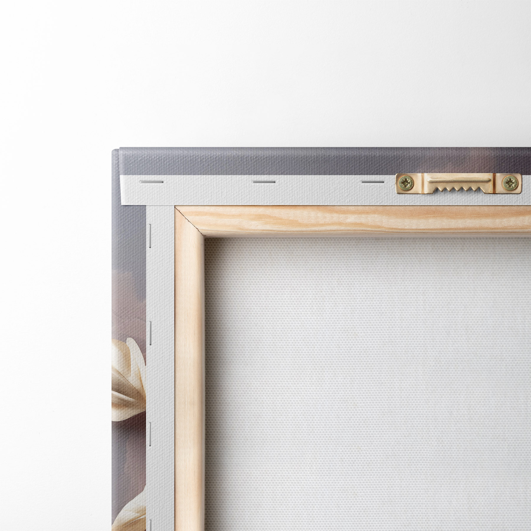 Om het doek op te spannen op spielatten zonder de afbeelding te beschadigen, gebruiken we gespiegeld beeld.
