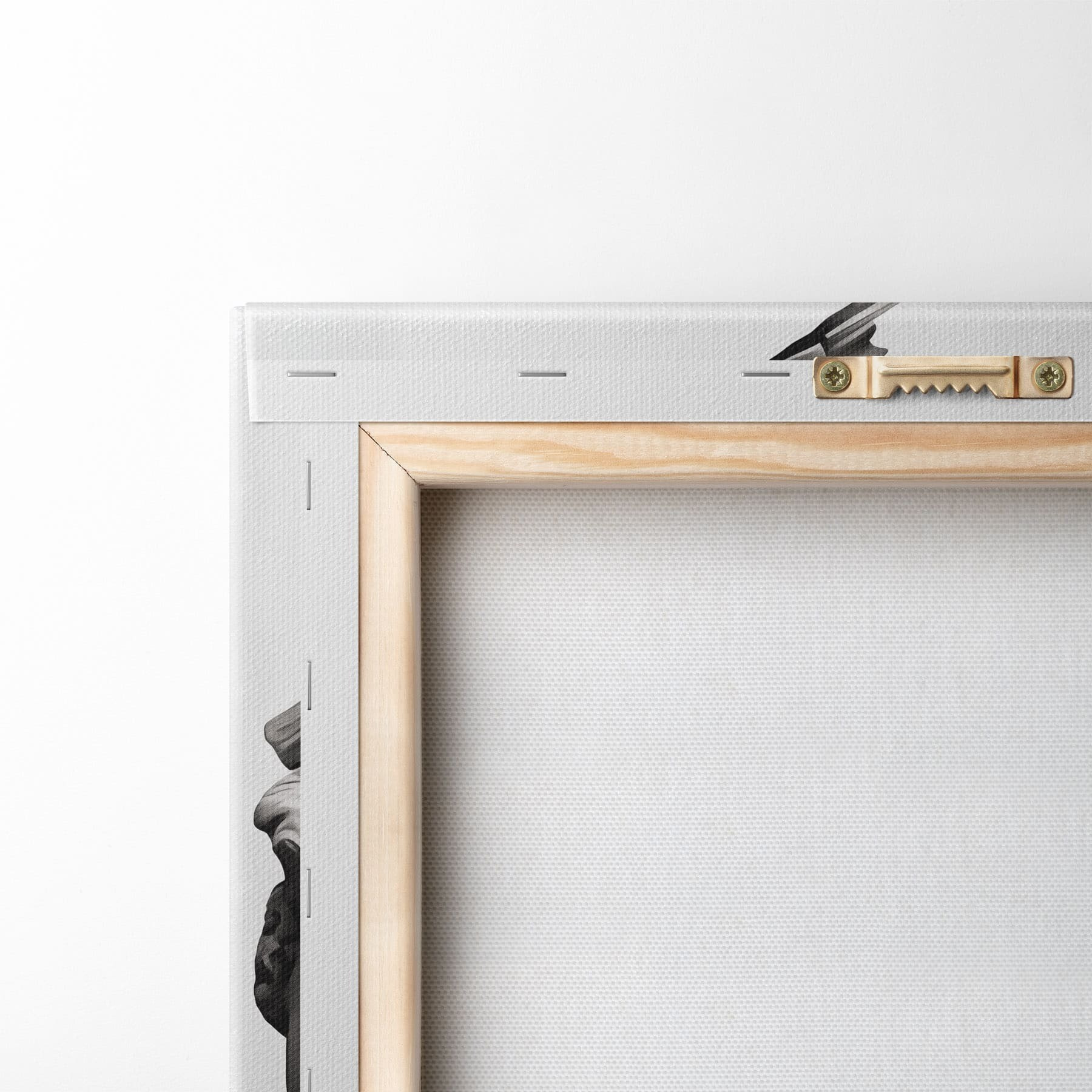 Om het doek op te spannen op spielatten zonder de afbeelding te beschadigen, gebruiken we gespiegeld beeld.