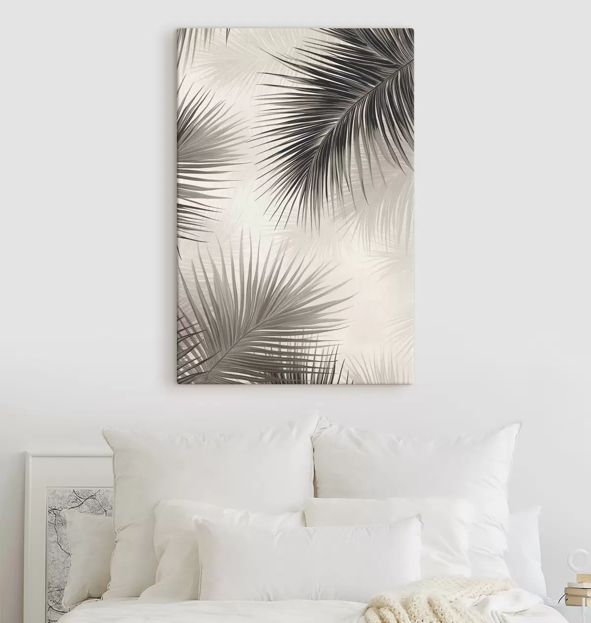 Je kunt het schilderij ophangen aan schroeven. Hiervoor leveren we bevestigingen bij onze foto's, zodat je de foto gemakkelijk kunt ophangen.
