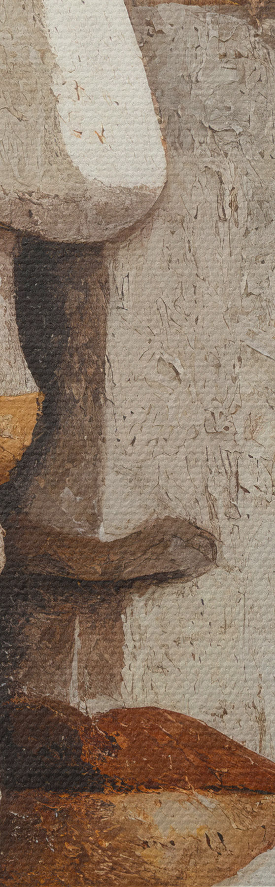Het schilderij kan voorzichtig worden schoongeveegd met een droge zachte doek of spons; het wordt niet aanbevolen om natte producten te gebruiken. Het gebruik van een vochtige spons is alleen toegestaan als het schilderij gevernist is.