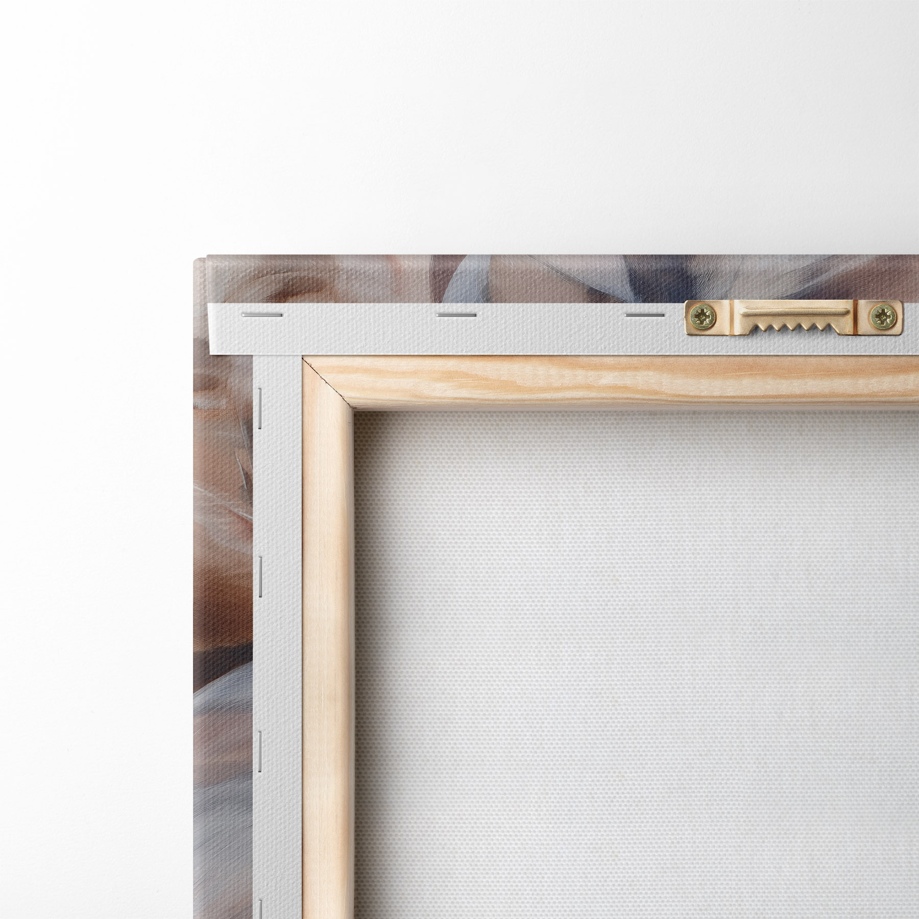 Om het doek op te spannen op spielatten zonder de afbeelding te beschadigen, gebruiken we gespiegeld beeld.