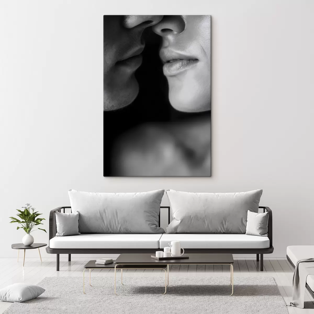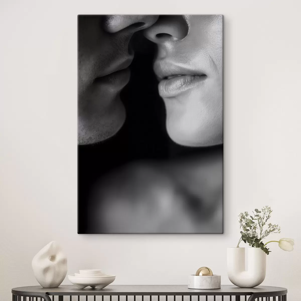 Schilderij zwarte en witte lippen van een man en een vrouw Art. s47687