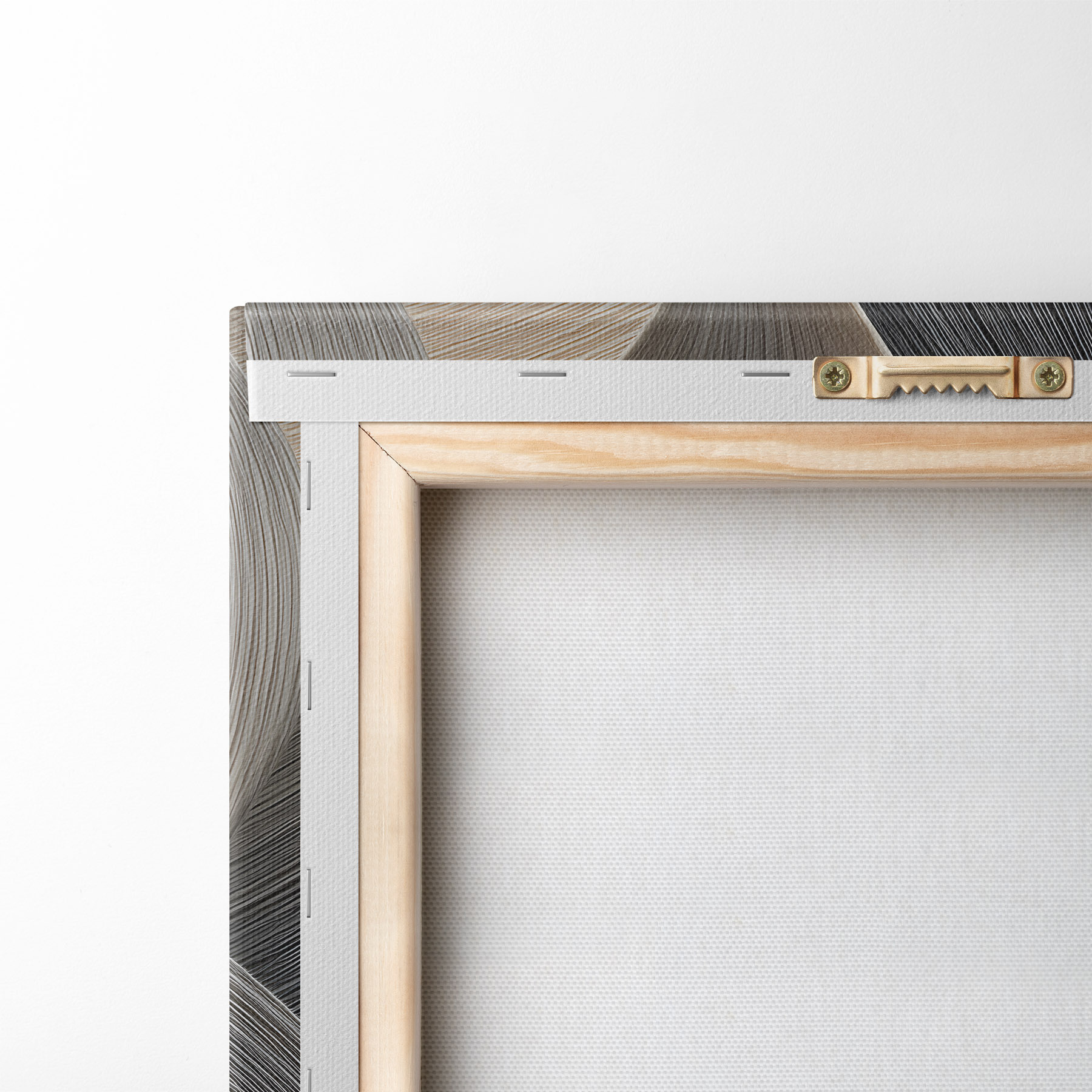 Om het doek op te spannen op spielatten zonder de afbeelding te beschadigen, gebruiken we gespiegeld beeld.