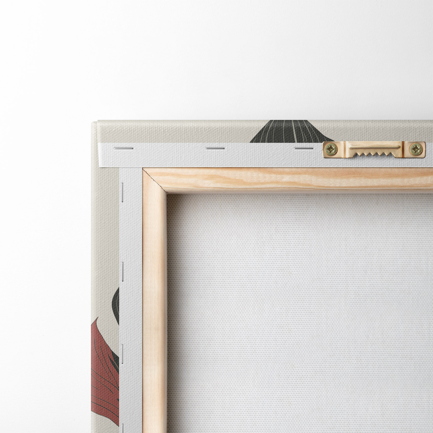 Om het doek op te spannen op spielatten zonder de afbeelding te beschadigen, gebruiken we gespiegeld beeld.