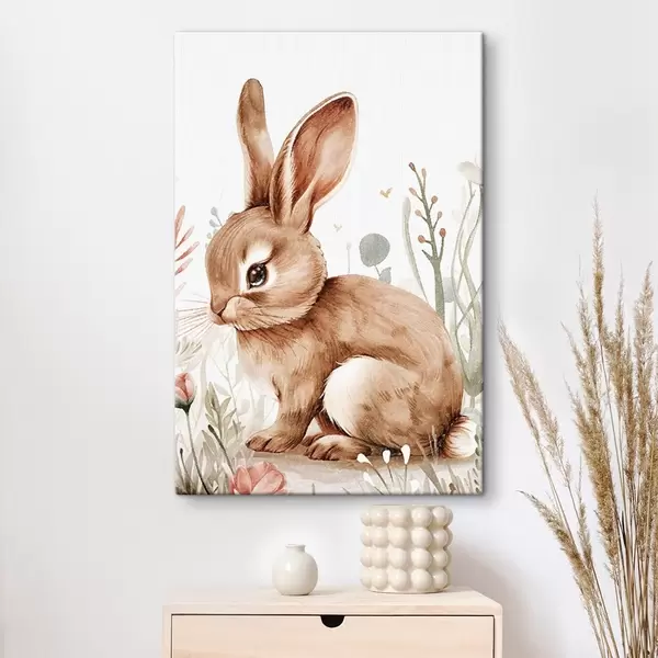 Schilderij Schattig konijntje in bloemen, potloodtekening Art. s47741