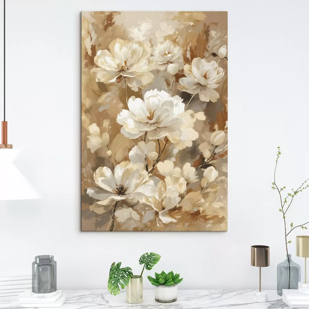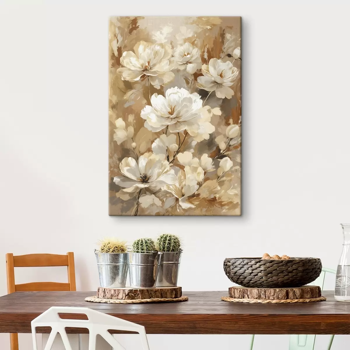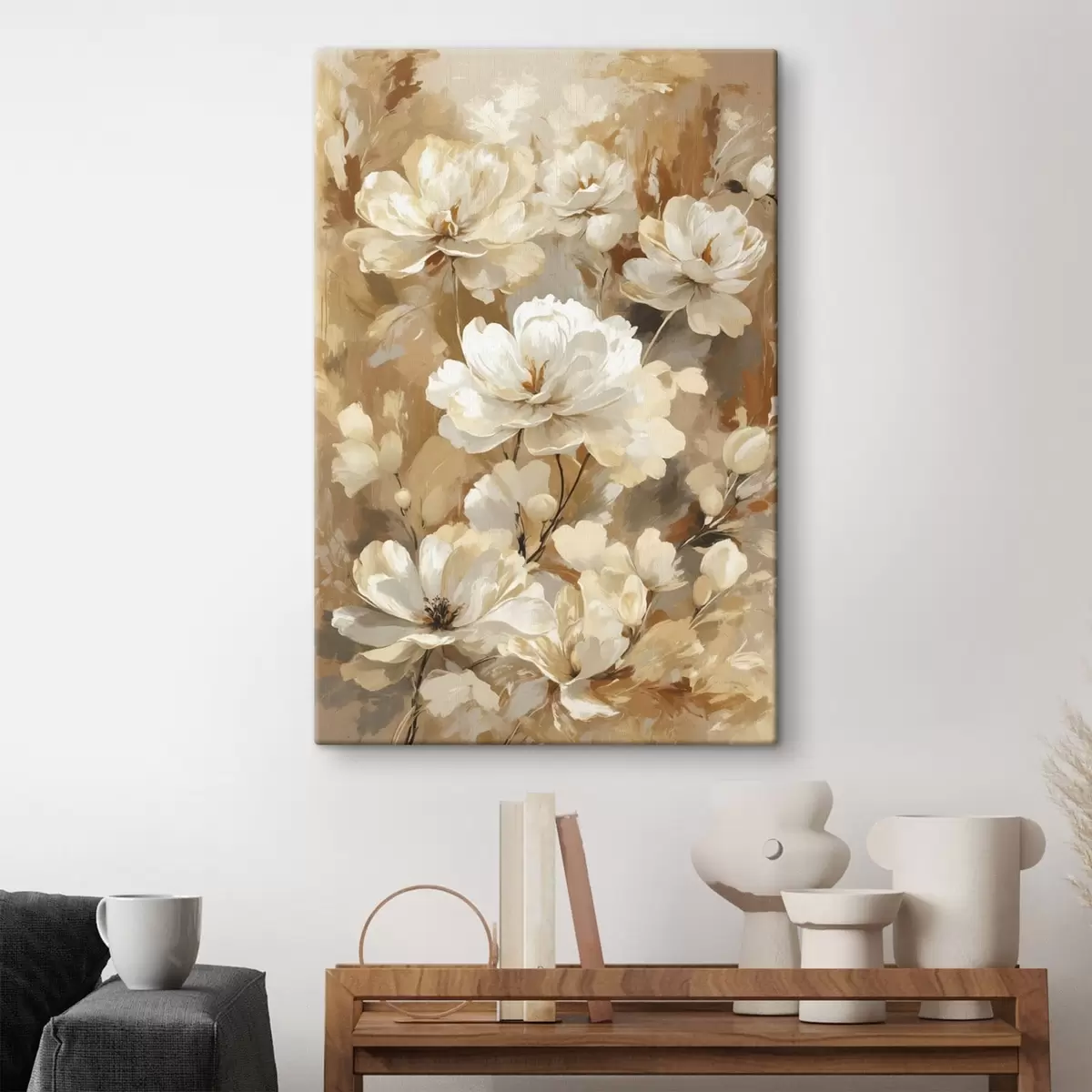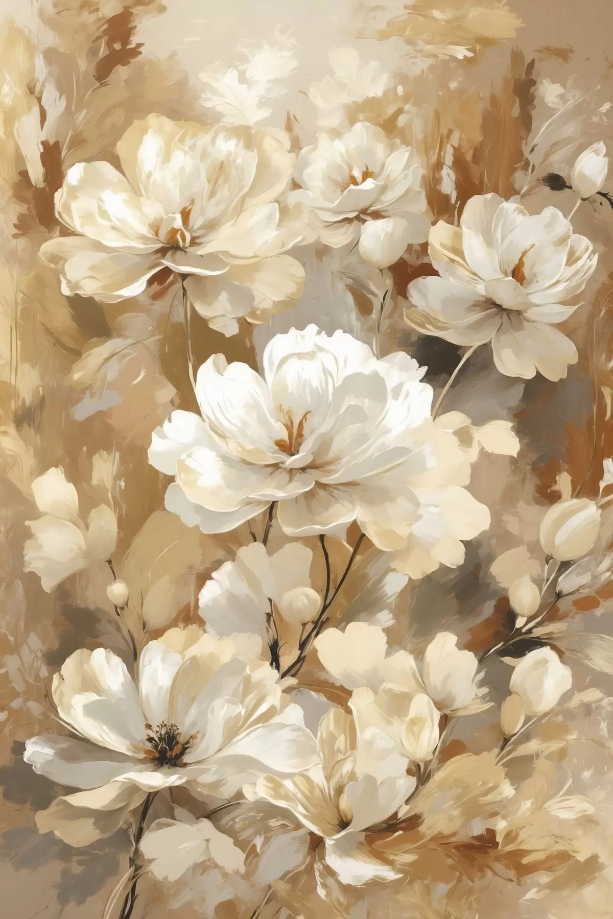 Schilderij Grote lichte bloemen geschilderd met brede penseelstreken Art. s47761