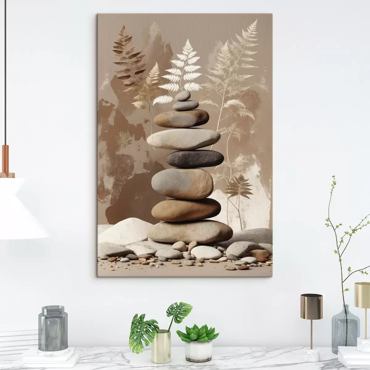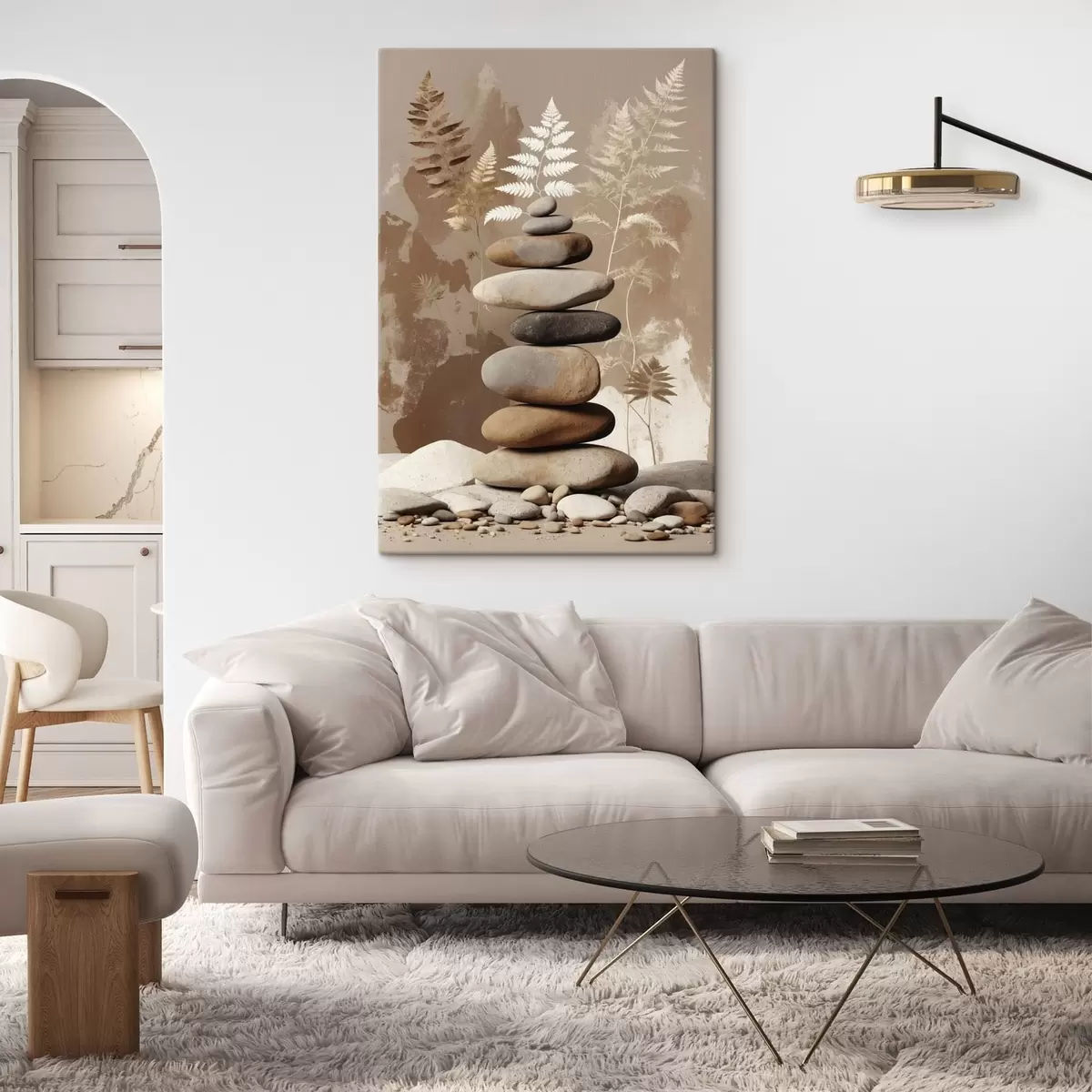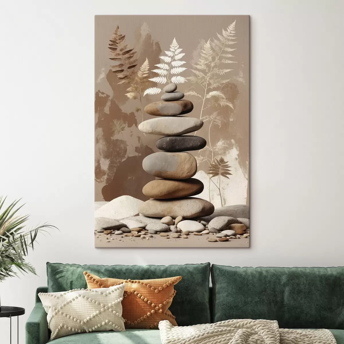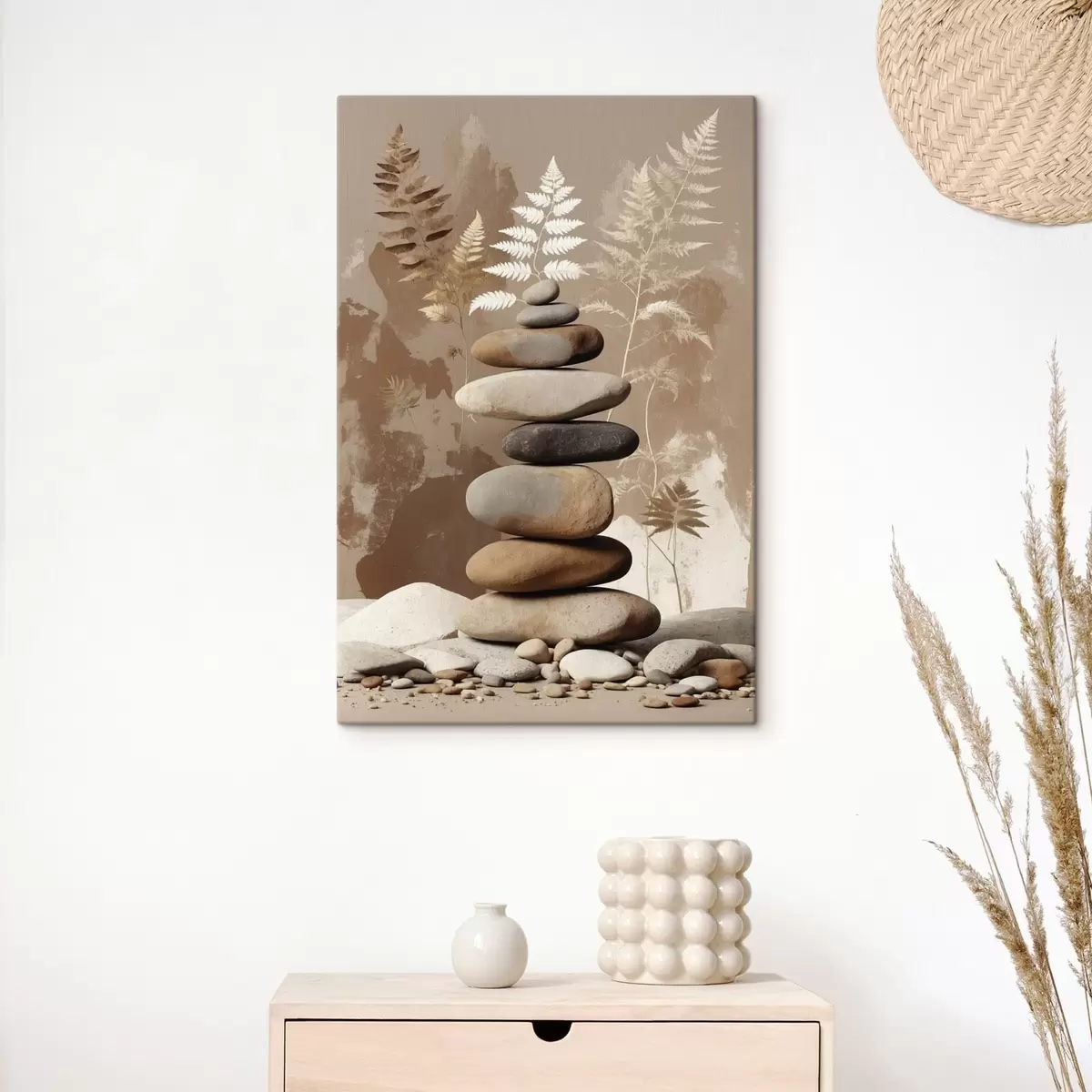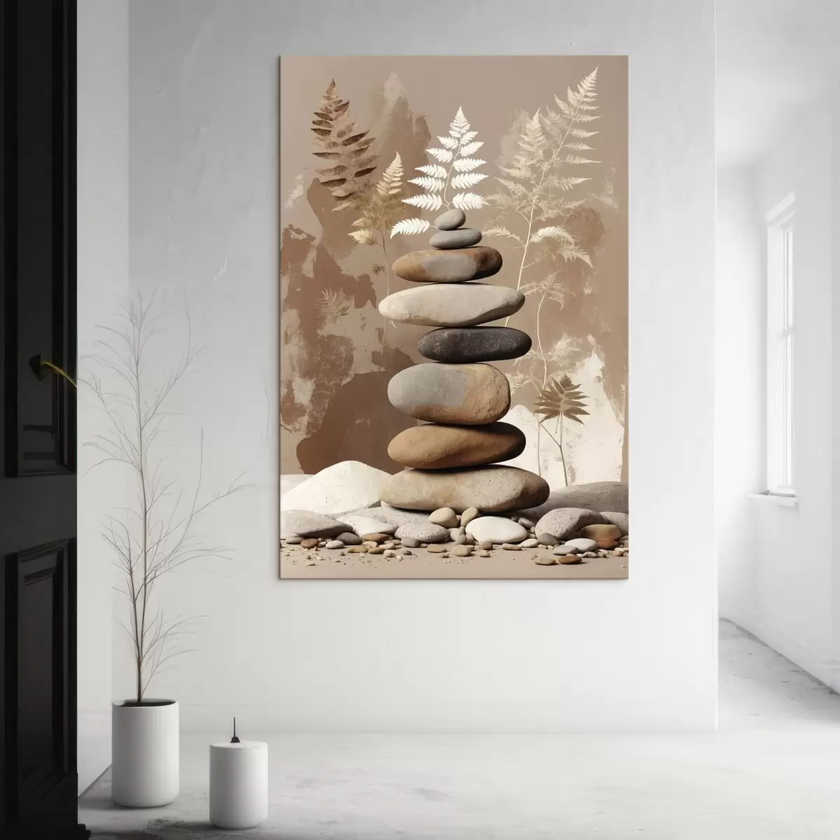 Schilderij Stapel gladde stenen met een botanische achtergrond Art. s47764