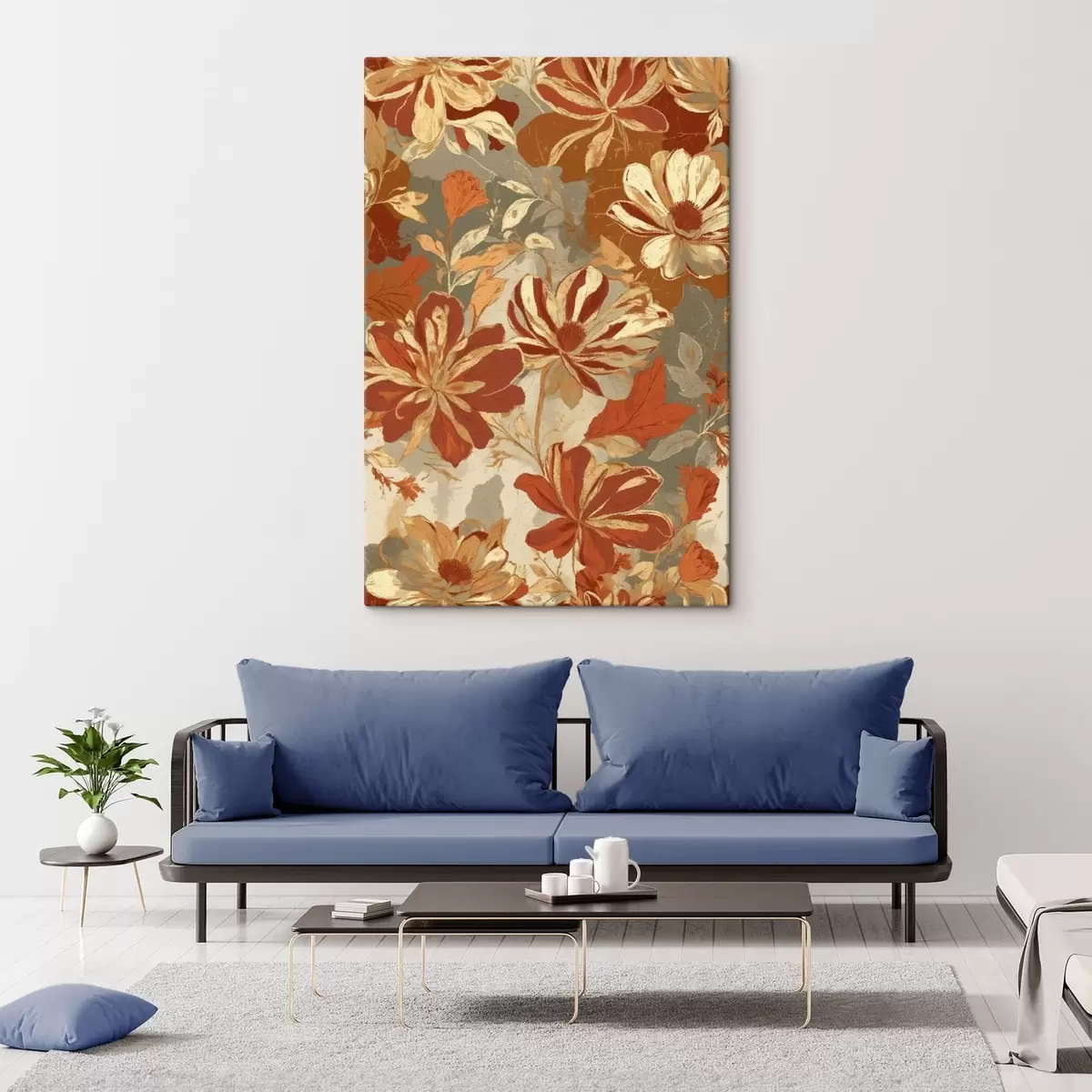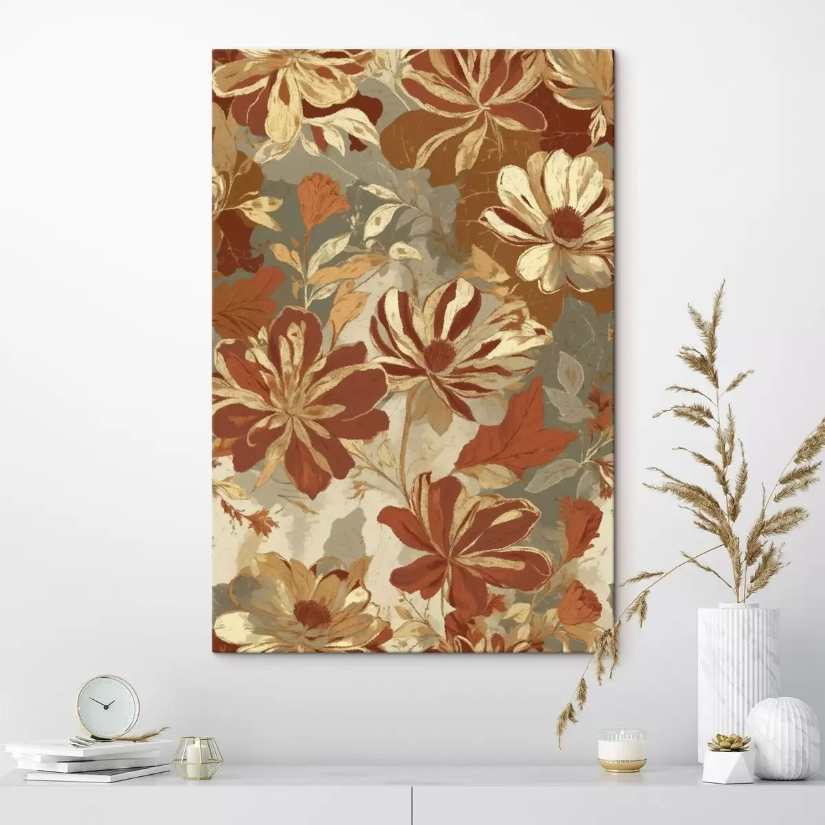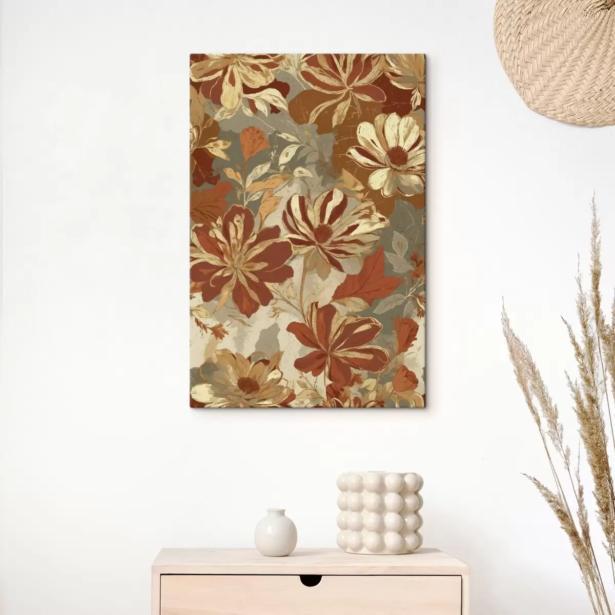 Schilderij Bloemenpatroon in warme roest- en crèmekleuren Art. s47770