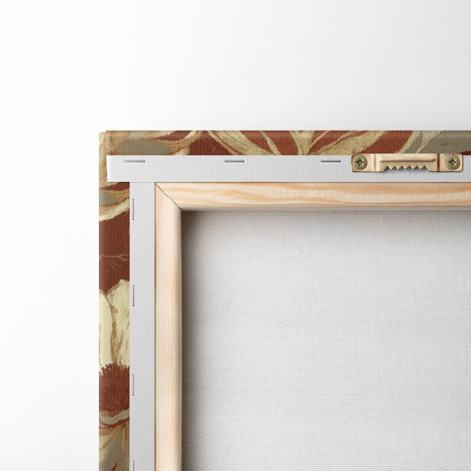 Om het doek op te spannen op spielatten zonder de afbeelding te beschadigen, gebruiken we gespiegeld beeld.
