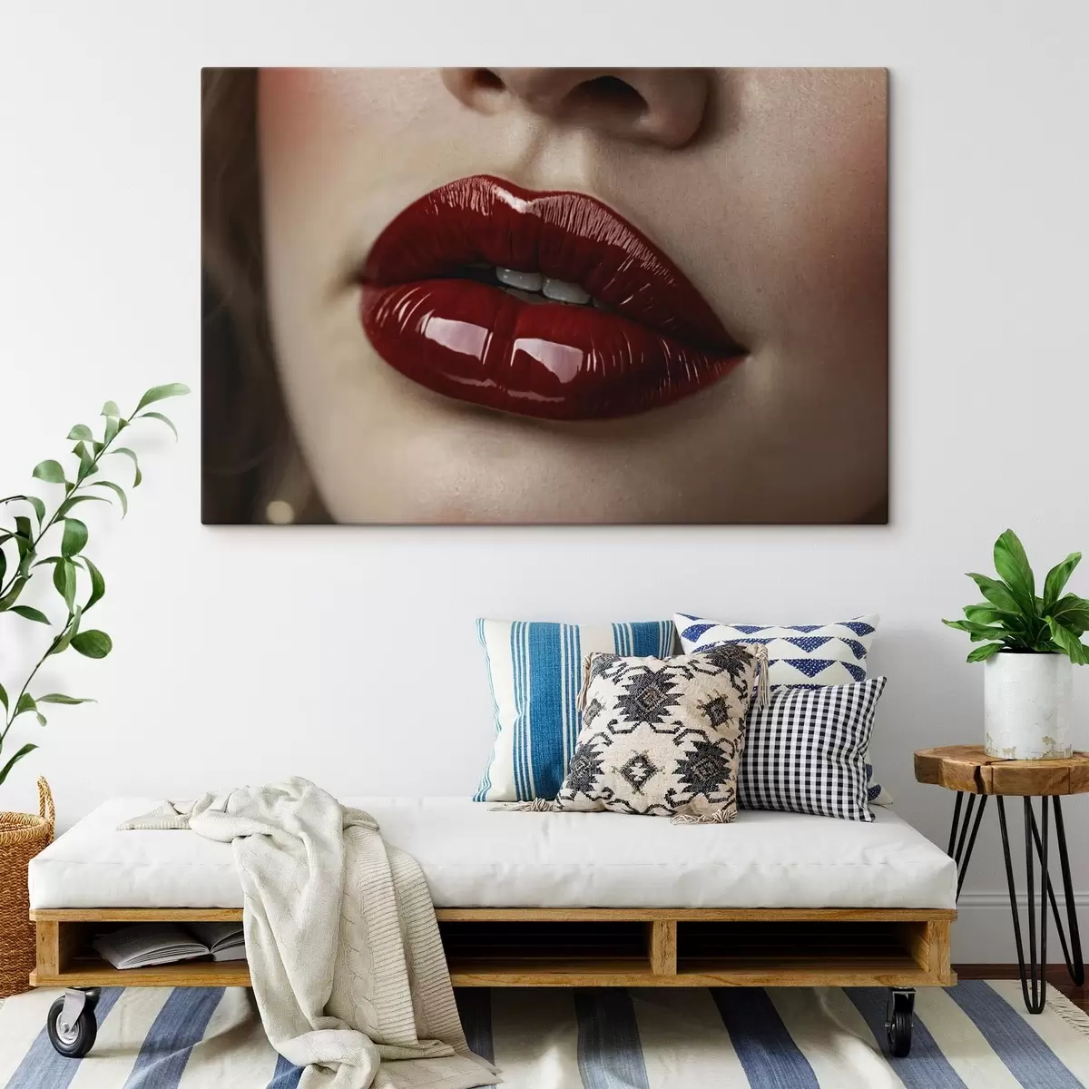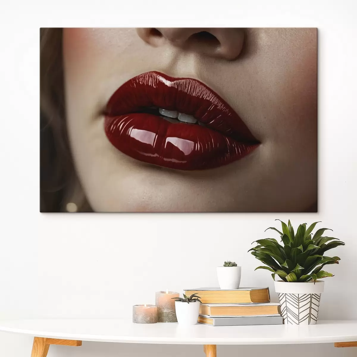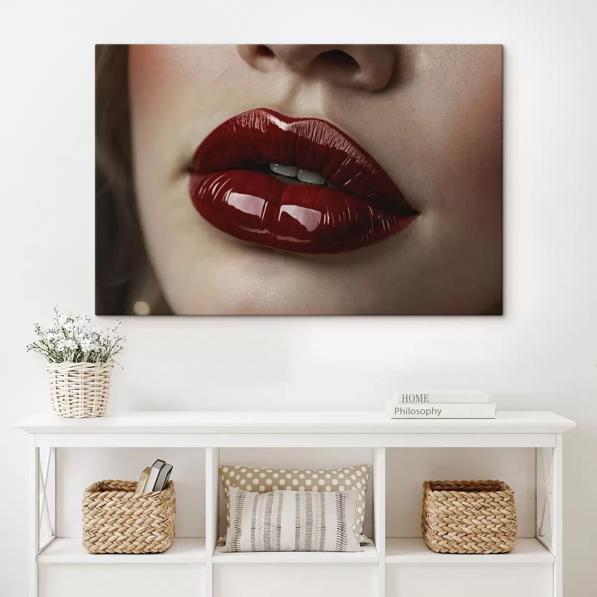 Schilderij Zeer close-up van glanzende rode lippen Art. s47772