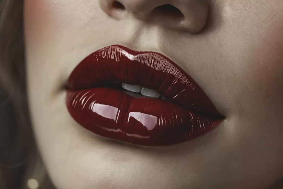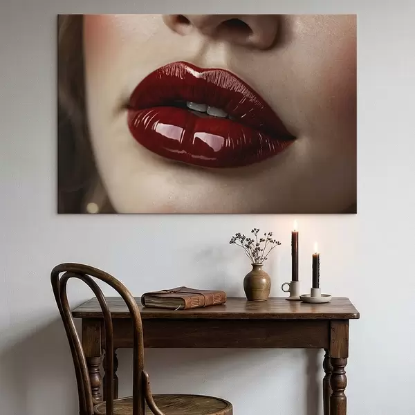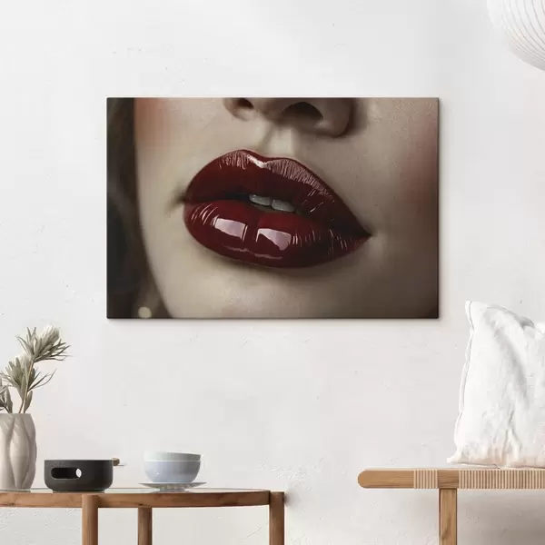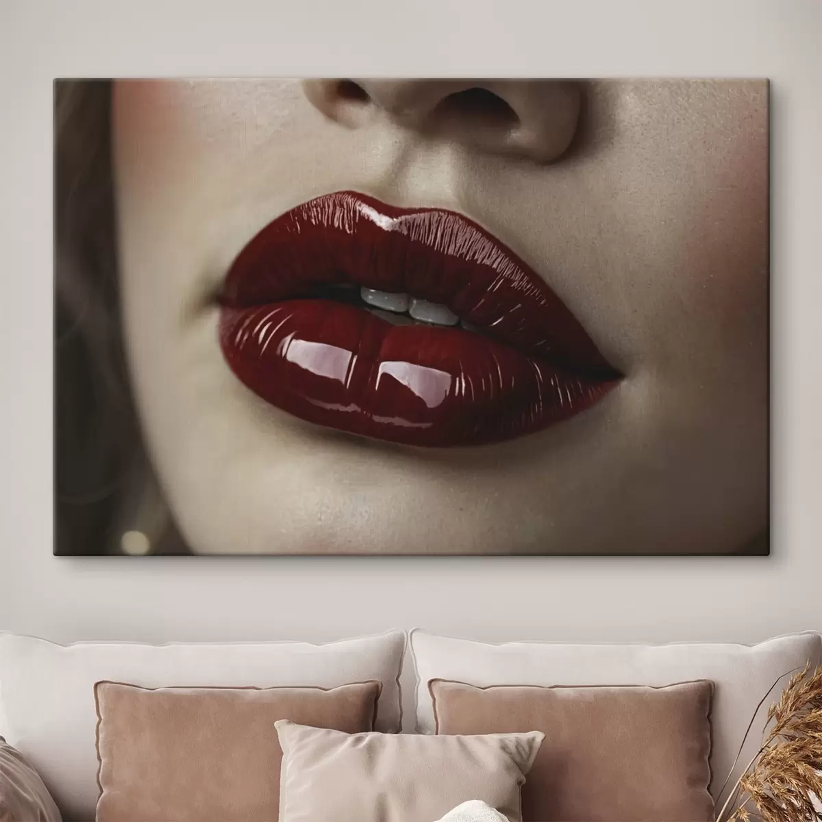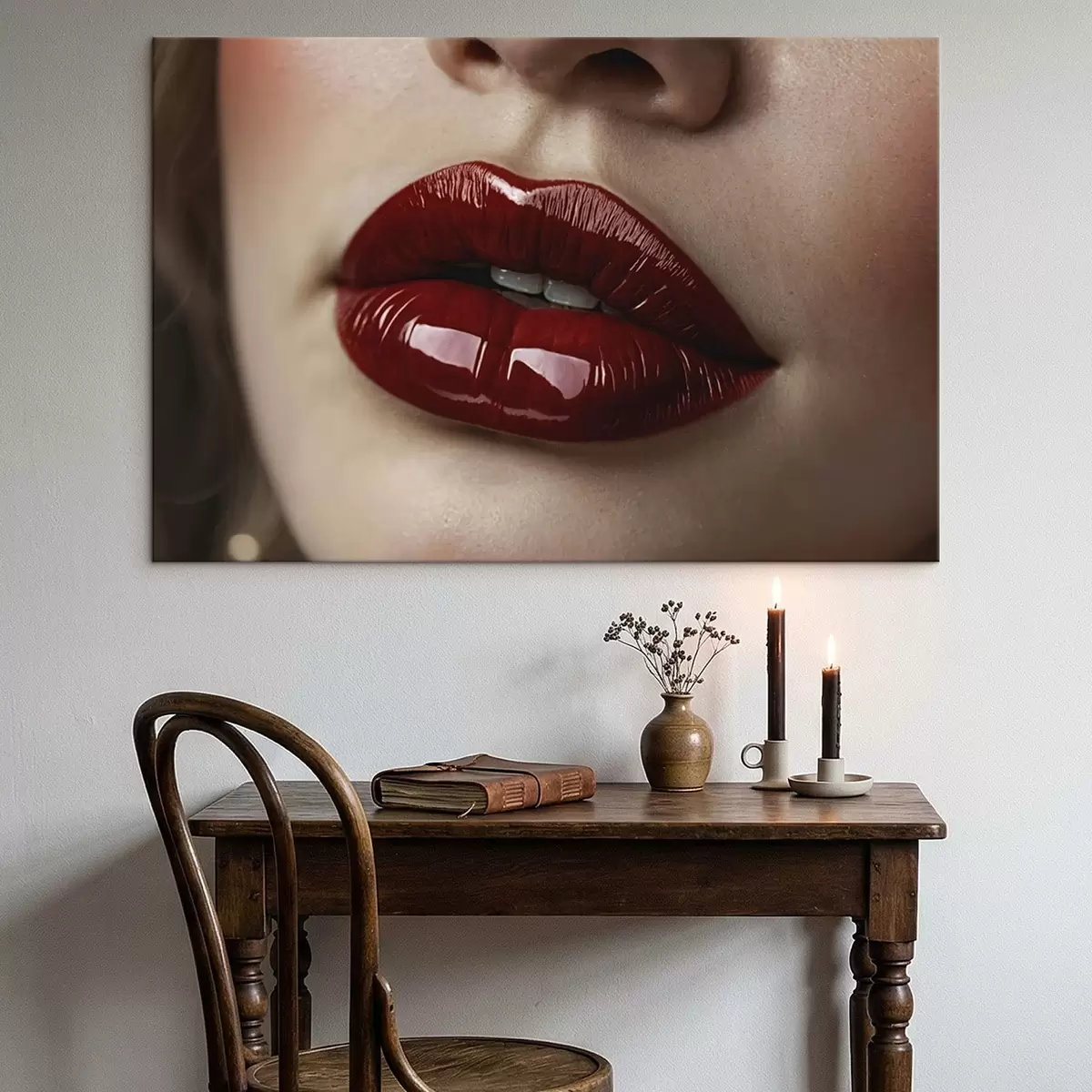 Schilderij Zeer close-up van glanzende rode lippen Art. s47772