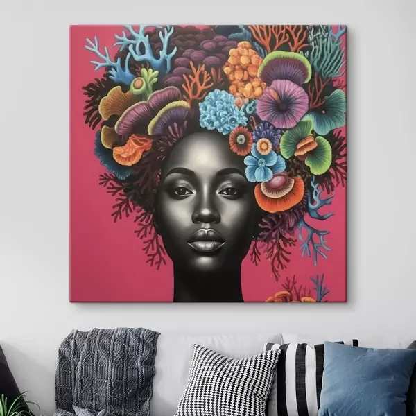 Schilderijen Psychedelisch portret van een vrouw met paddenstoelen s47786